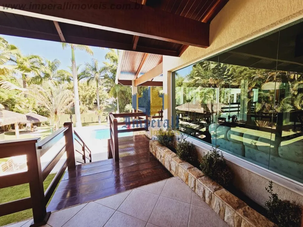 São 3870 m² de área de terreno e 649 m2 de área construída, 3 Suítes no pavimento térreo, 1 Suíte master com mezanino privativo, espaçosa e aconchegante sala de 3 ambientes, área gourmet completa com chopeira profissional, salão de jogos, piscina com 2 quiosque sendo um gourmet, rampa de barco e muito verde.