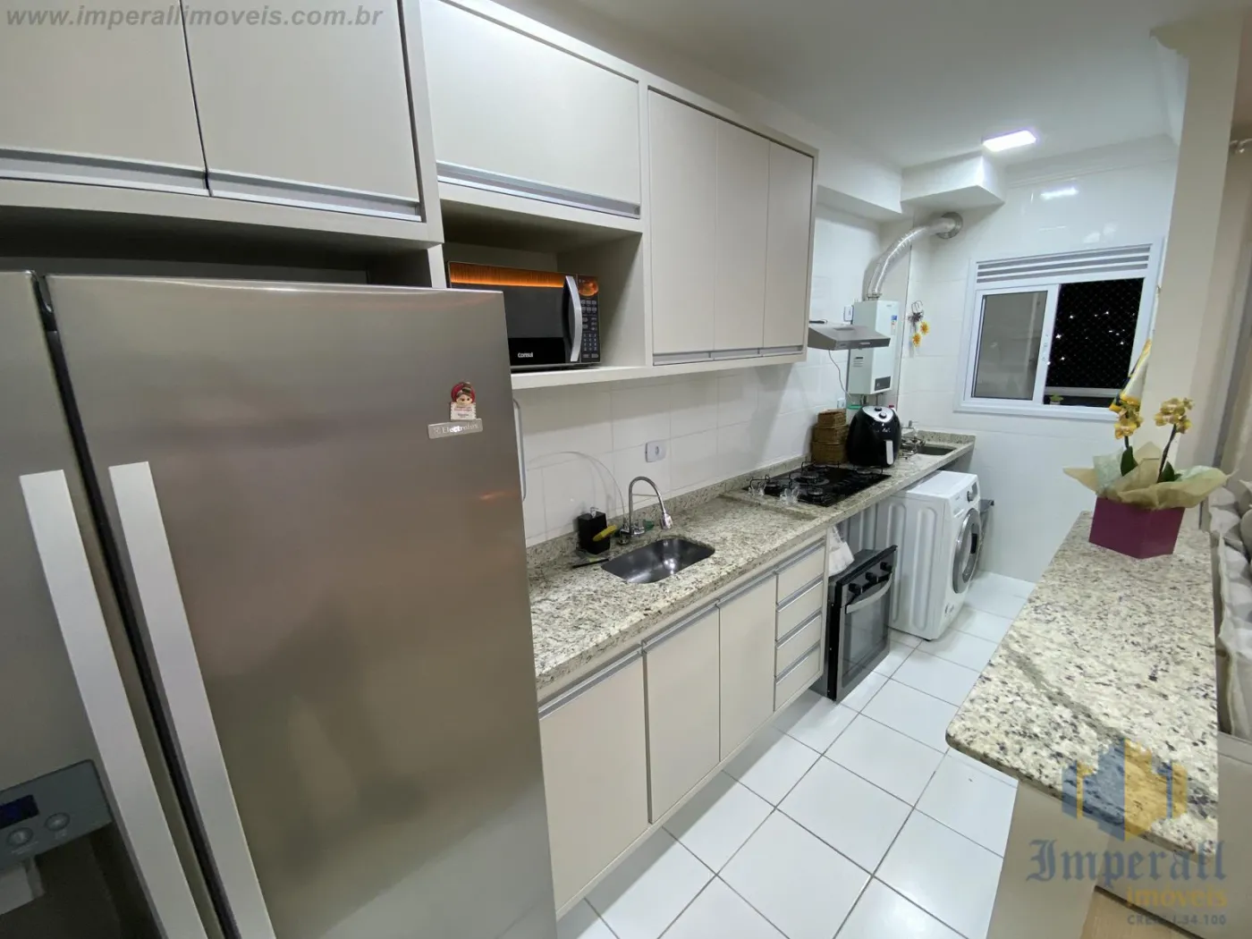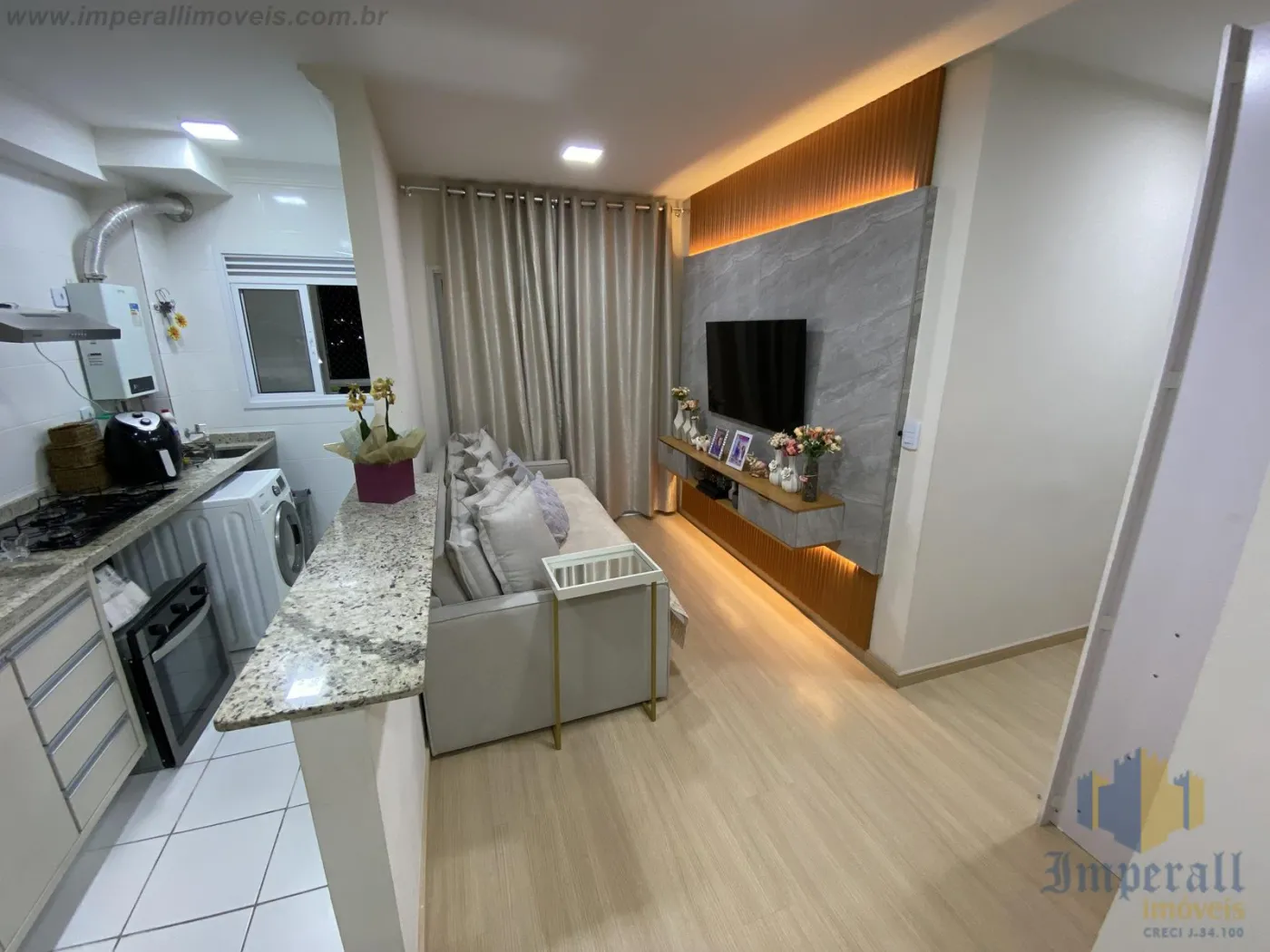 São 2 dormitórios sendo 1 suíte, 1 dormitório com ar condicionado, sala de tv, cozinha americana com armários planejados, varanda gourmet e área de serviços.