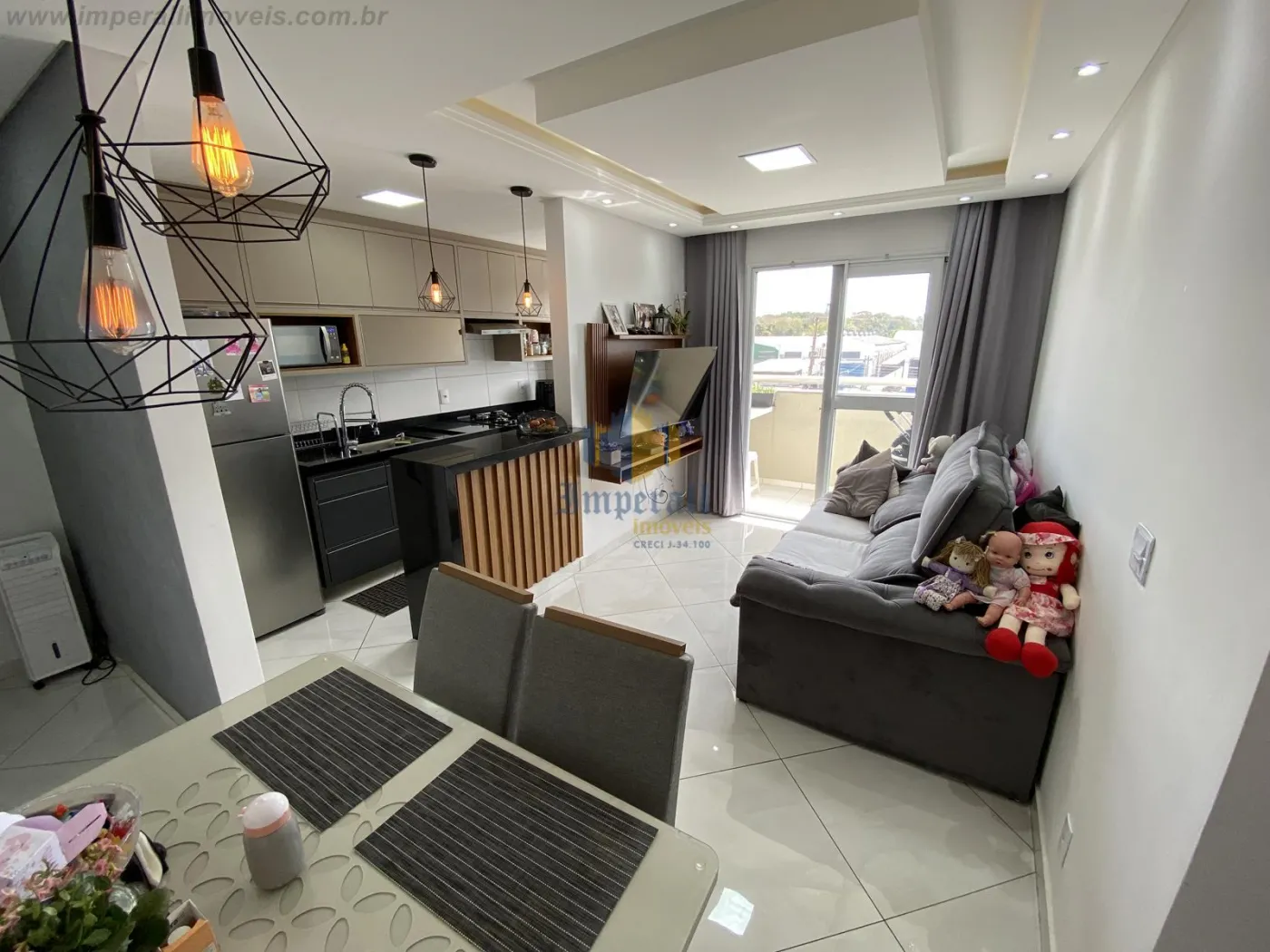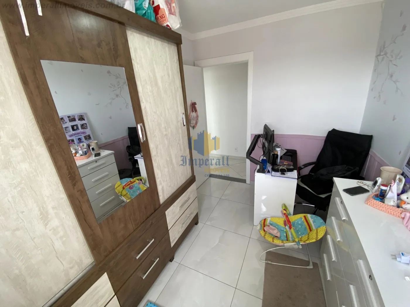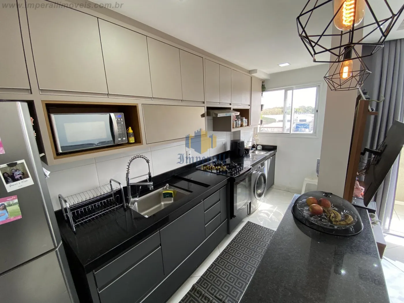 São 2 dormitórios sendo 1 com planejados, 1 banheiro, sala de 2 ambientes, varanda, cozinha americana com armários planejados e área de serviços.