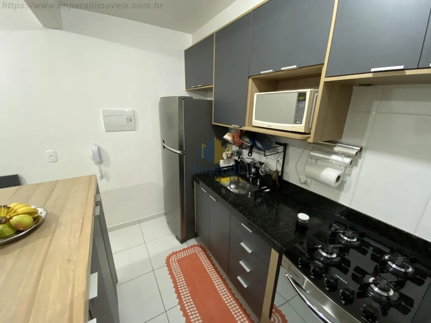 São 2 dormitórios sendo 1 suíte e ambos os dormitórios com armários planejados, 1 banheiro, cozinha americana planejada, área de serviços com armários e varanda.