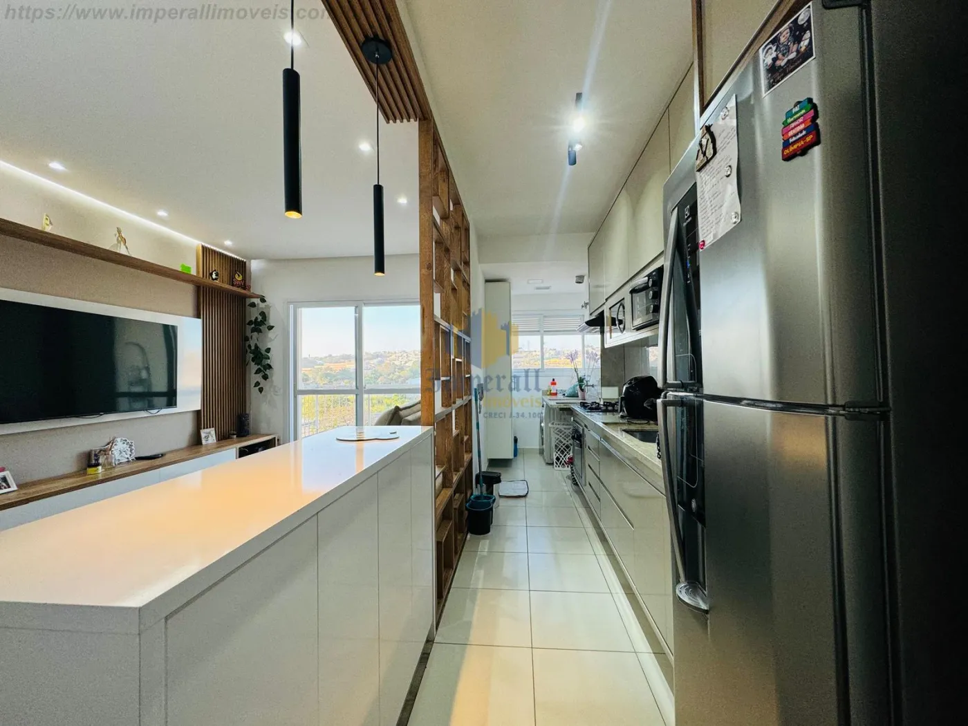 Apartamento com uma bela vista livre e móveis planejados com revestimento de alto padrão.