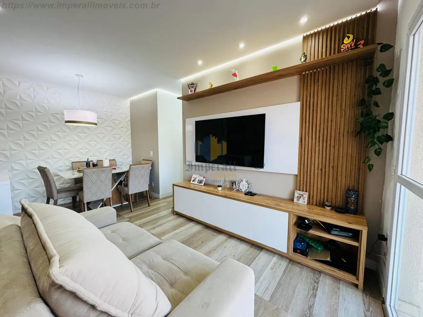 São 2 dormitórios planejados sendo 1 suíte, sala de 2 ambientes, sanca de gesso com iluminação de led embutida, cozinha repletas de armários planejados e área de serviços.