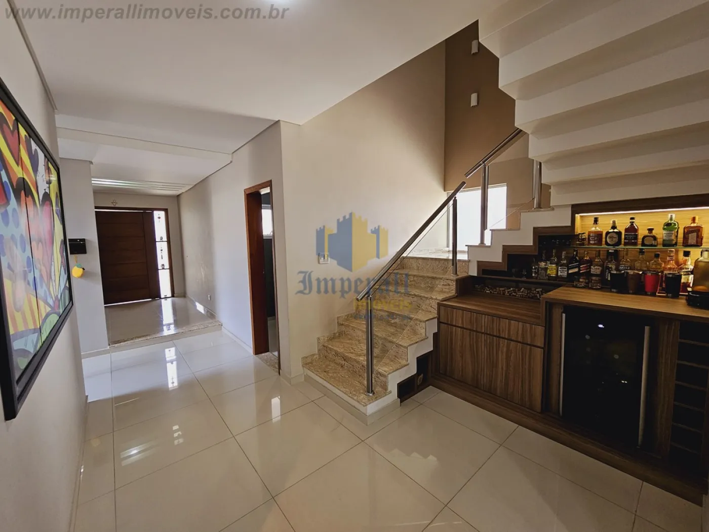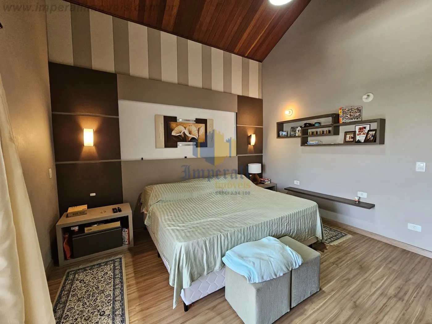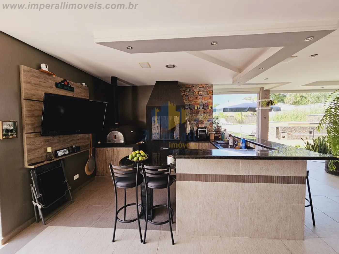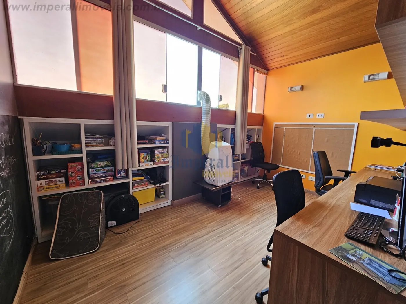 Sobrado de 4 suítes sendo 2 suítes convencionais e outra suíte no modelo americano. Na parte térrea da casa: escritório, lavabo, jardim de inverno, cinema, barzinho, sala de 3 ambientes, cozinha repleta de armários, área de serviço, espaço gourmet, sauna, pomar, tocheiro no chão para queimar lenha e uma linda piscina com hidromassagem. O pavimento superior foi todo reformado no ano de 2025 possibilitando hoje o imóvel ter as 4 suítes.