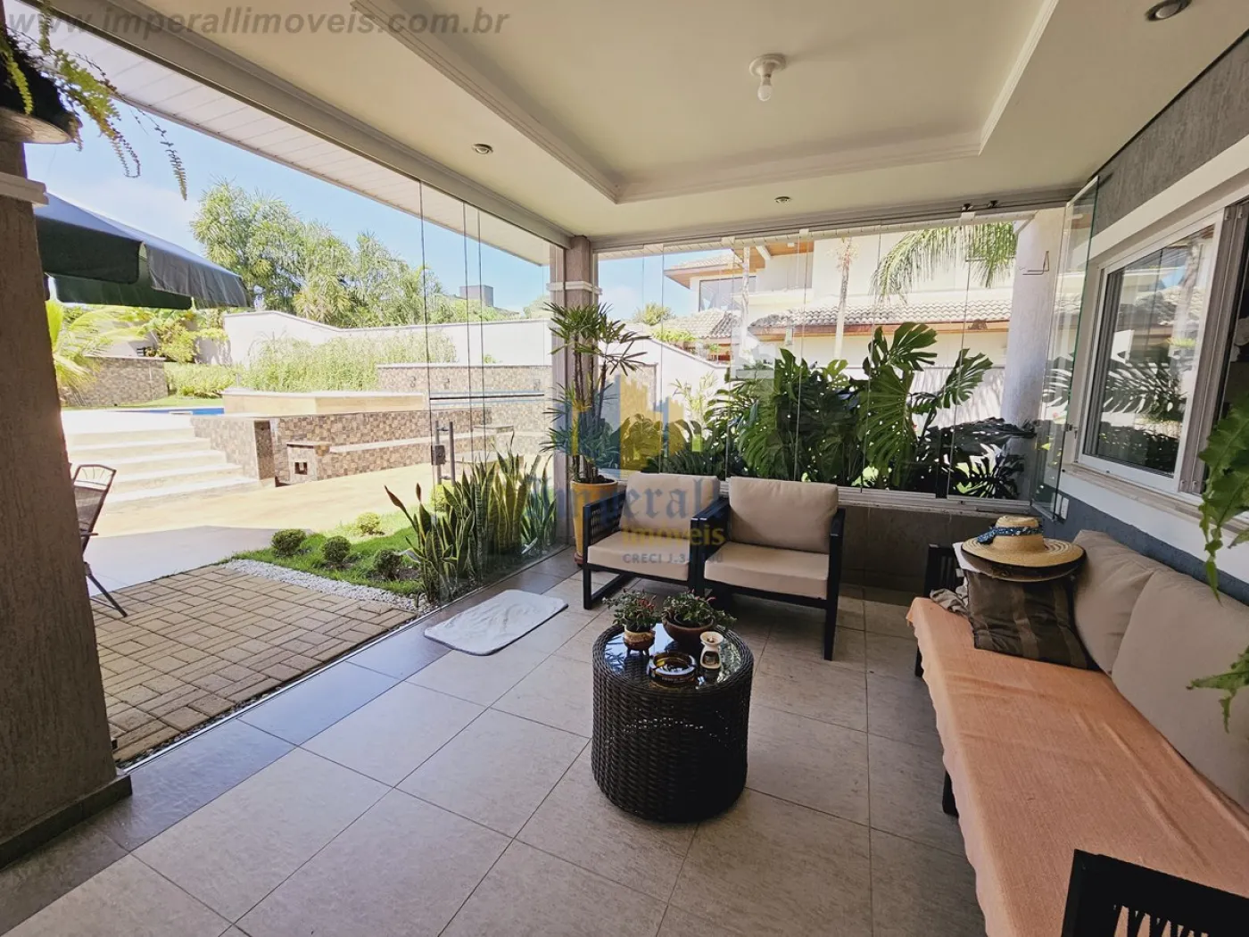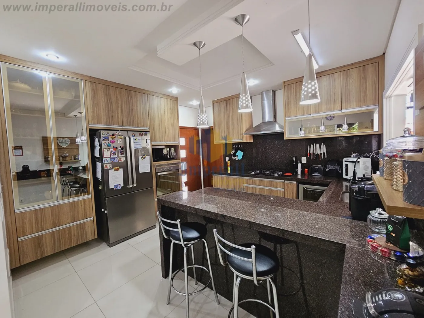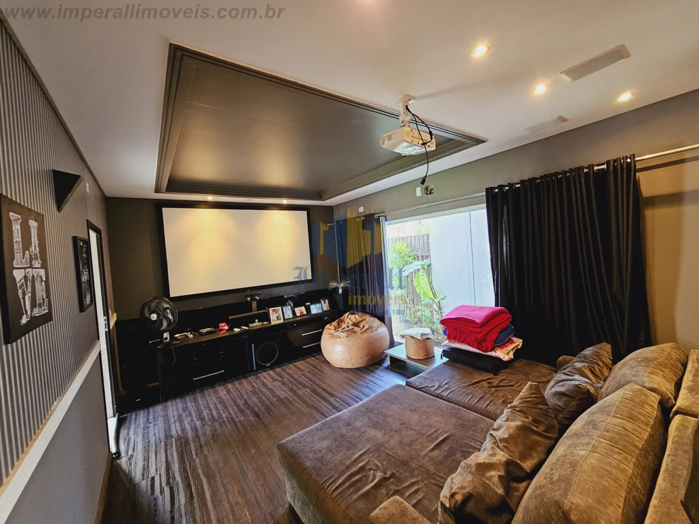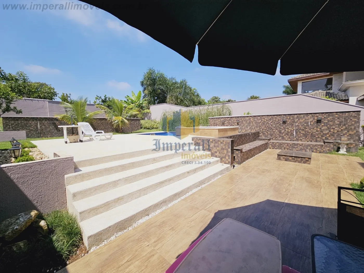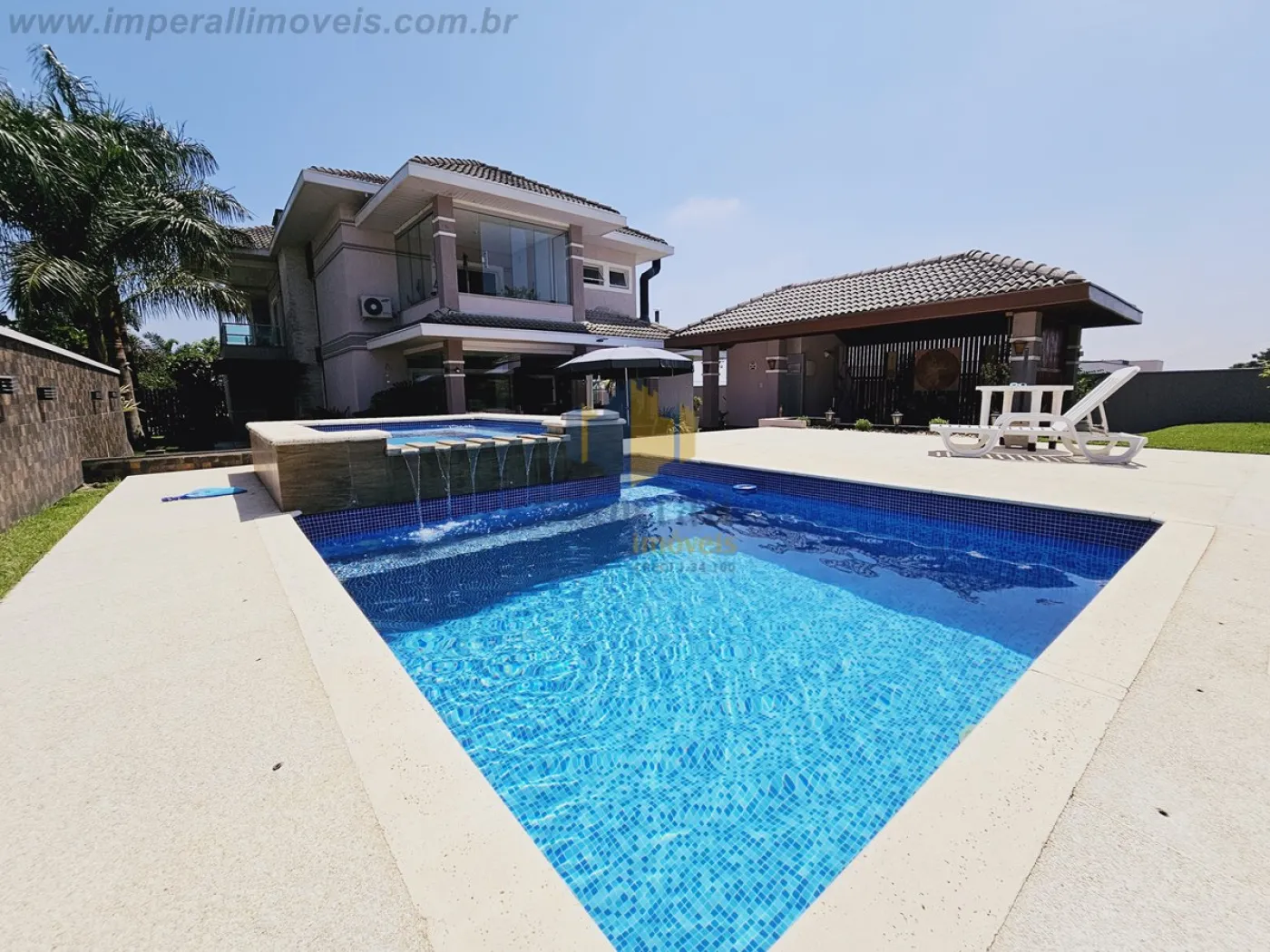 Sobrado de 4 suítes sendo 2 suítes convencionais e outra suíte no modelo americano. Na parte térrea da casa: escritório, lavabo, jardim de inverno, cinema, barzinho, sala de 3 ambientes, cozinha repleta de armários, área de serviço, espaço gourmet, sauna, pomar, tocheiro no chão para queimar lenha e uma linda piscina com hidromassagem. O pavimento superior foi todo reformado no ano de 2025 possibilitando hoje o imóvel ter as 4 suítes.