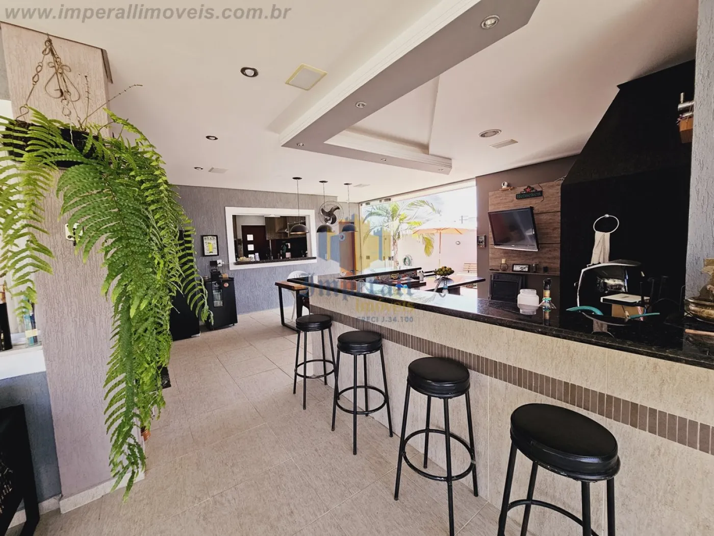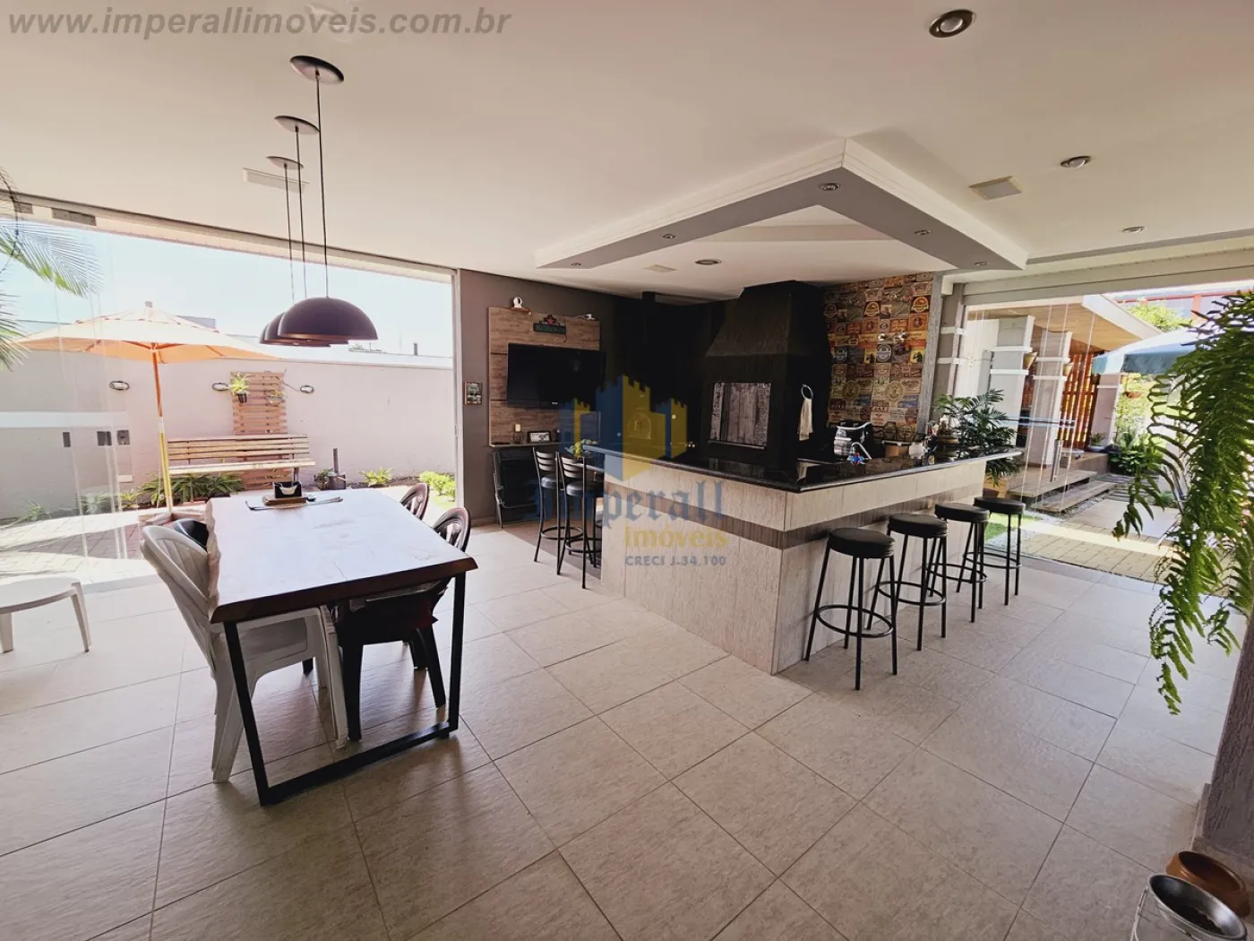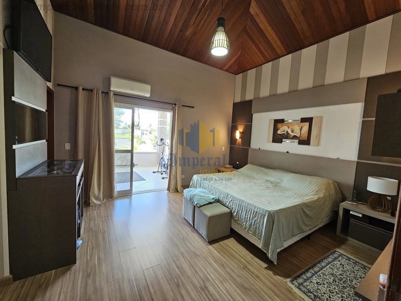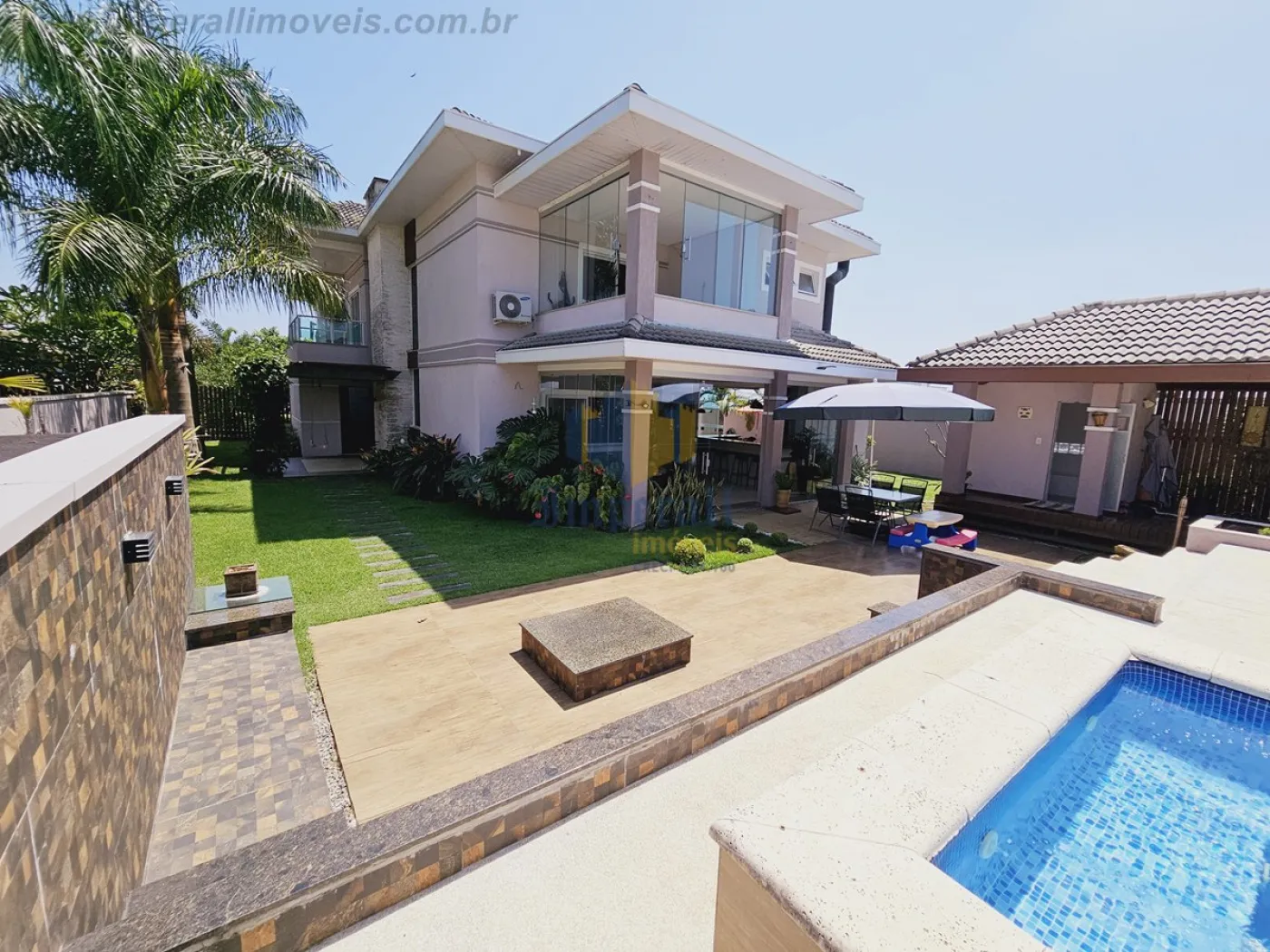 Sobrado de 4 suítes sendo 2 suítes convencionais e outra suíte no modelo americano. Na parte térrea da casa: escritório, lavabo, jardim de inverno, cinema, barzinho, sala de 3 ambientes, cozinha repleta de armários, área de serviço, espaço gourmet, sauna, pomar, tocheiro no chão para queimar lenha e uma linda piscina com hidromassagem. O pavimento superior foi todo reformado no ano de 2025 possibilitando hoje o imóvel ter as 4 suítes.