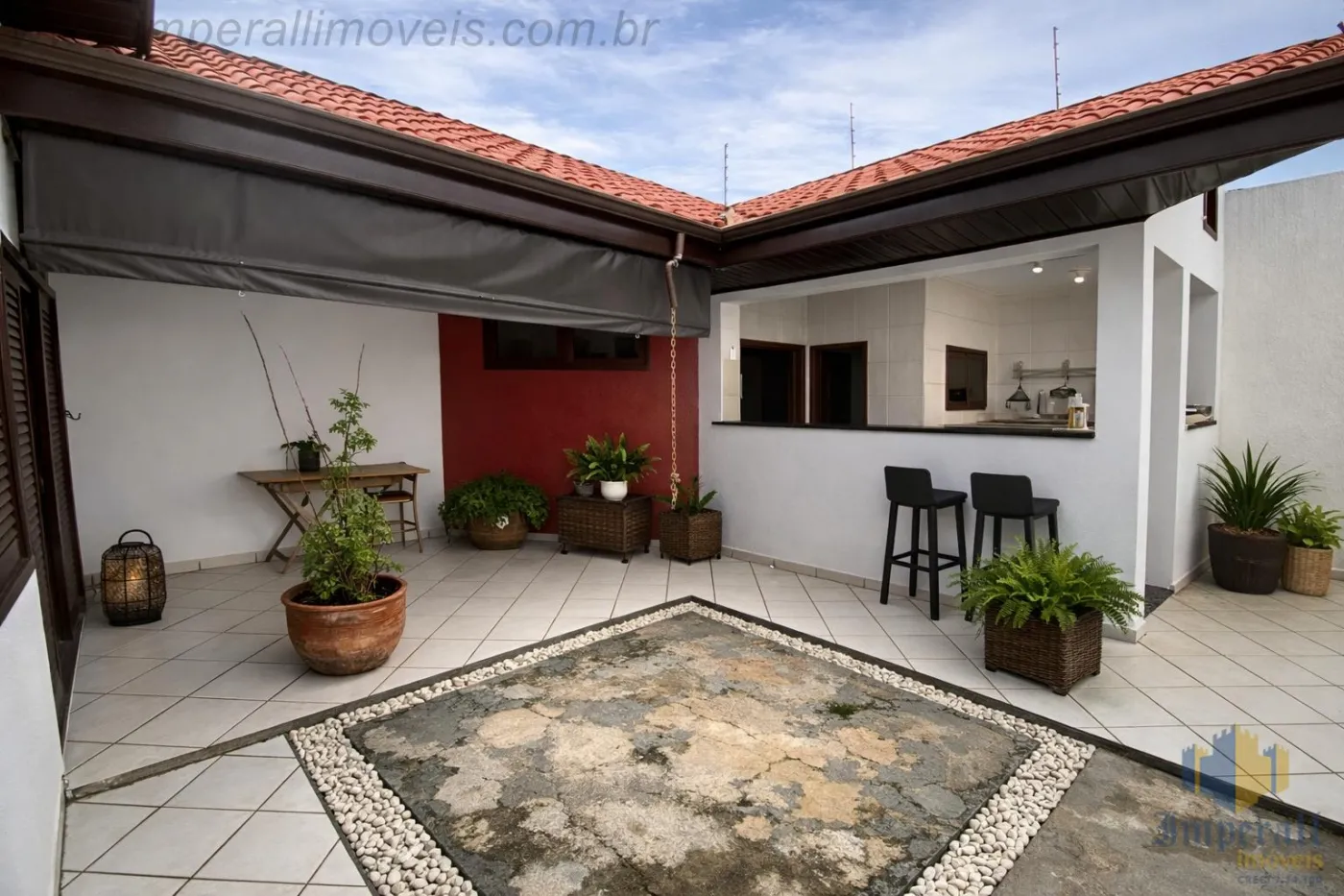Linda casa com 3 dormitórios sendo 1 suíte (armários planejados em 2 dormitórios), sala de 2 ambientes, cozinha em L com armários planejados, 1 banheiro social, sala de TV, área externa conta com 1 quarto e 1 lavabo.