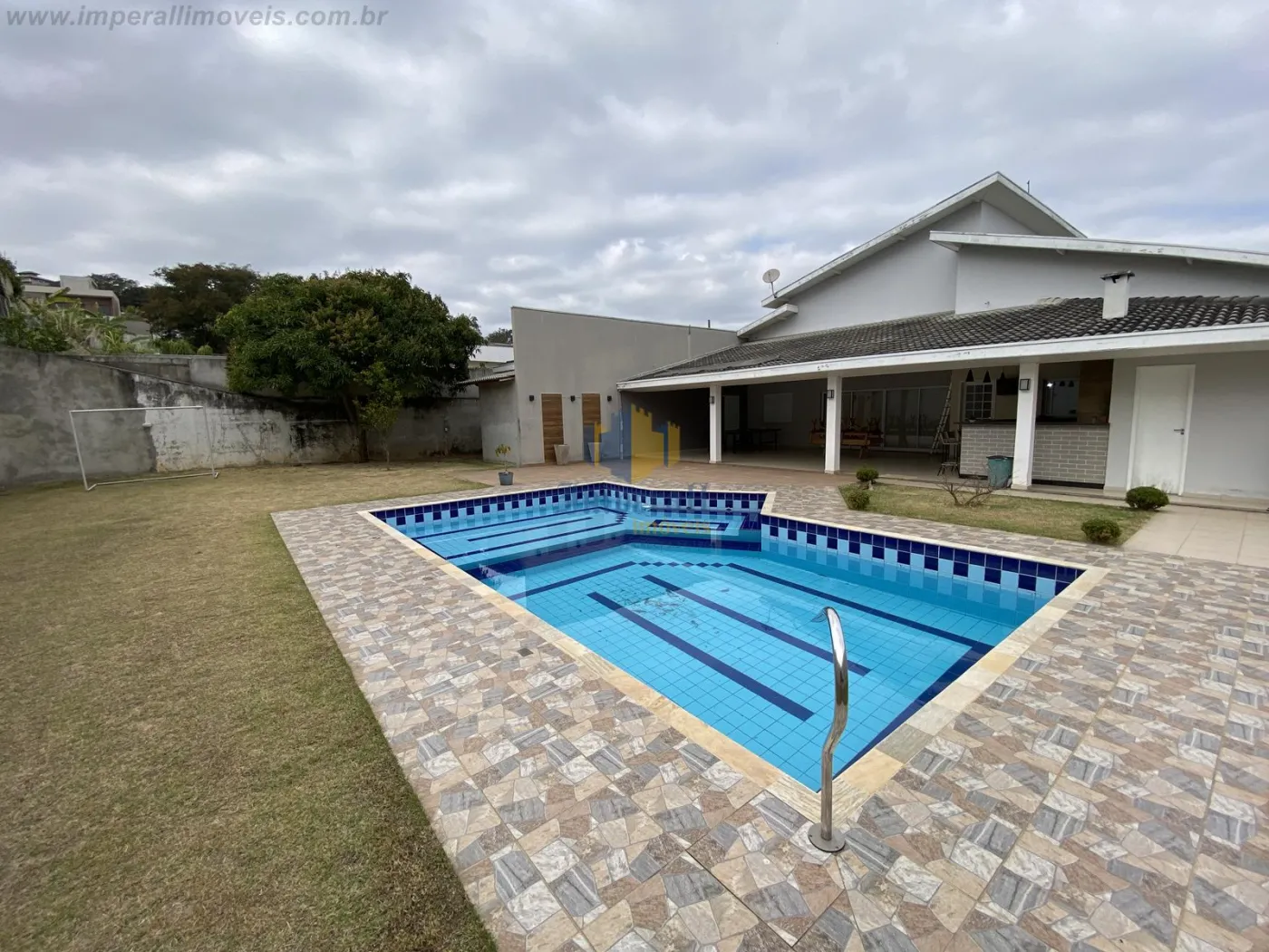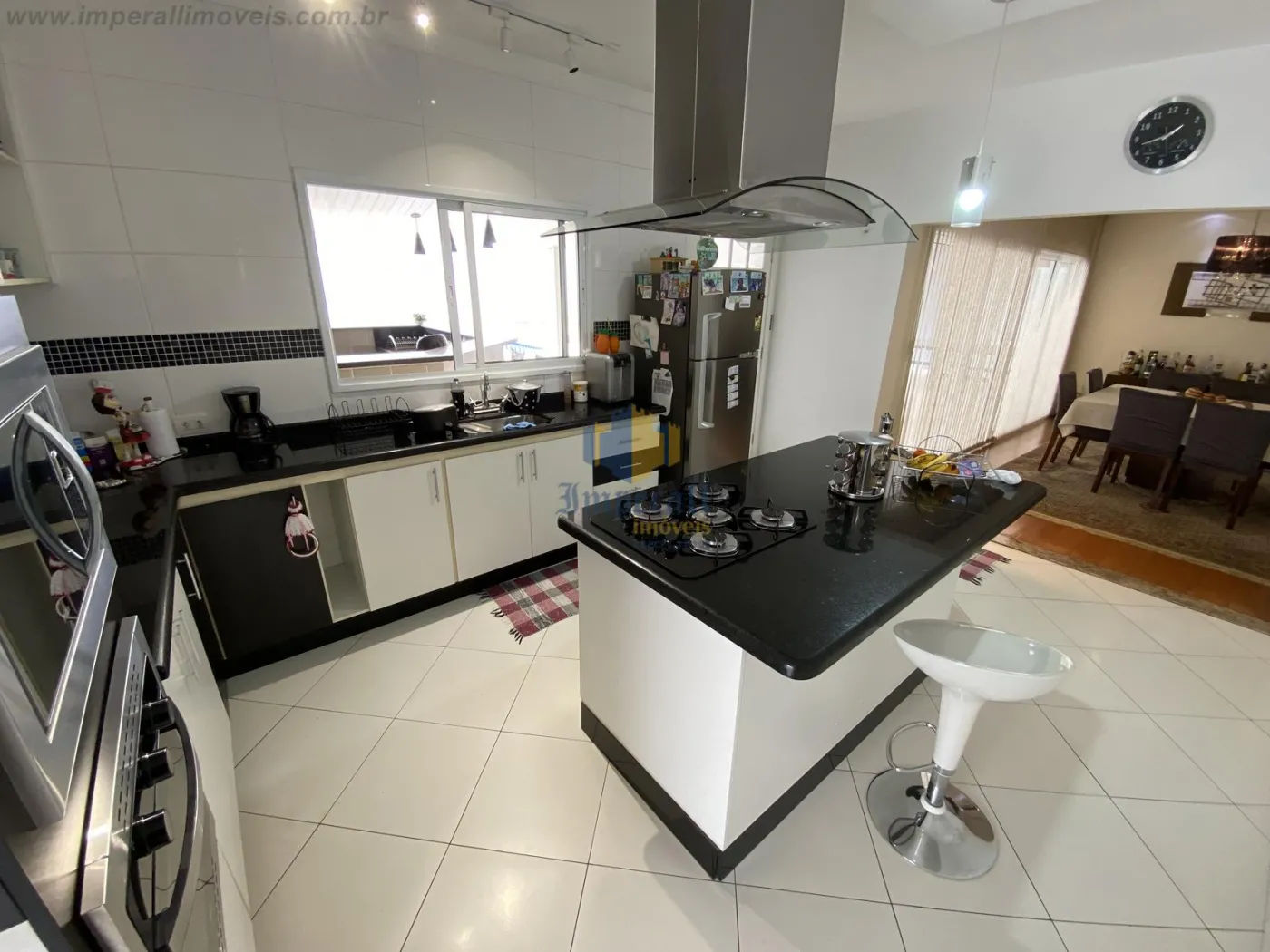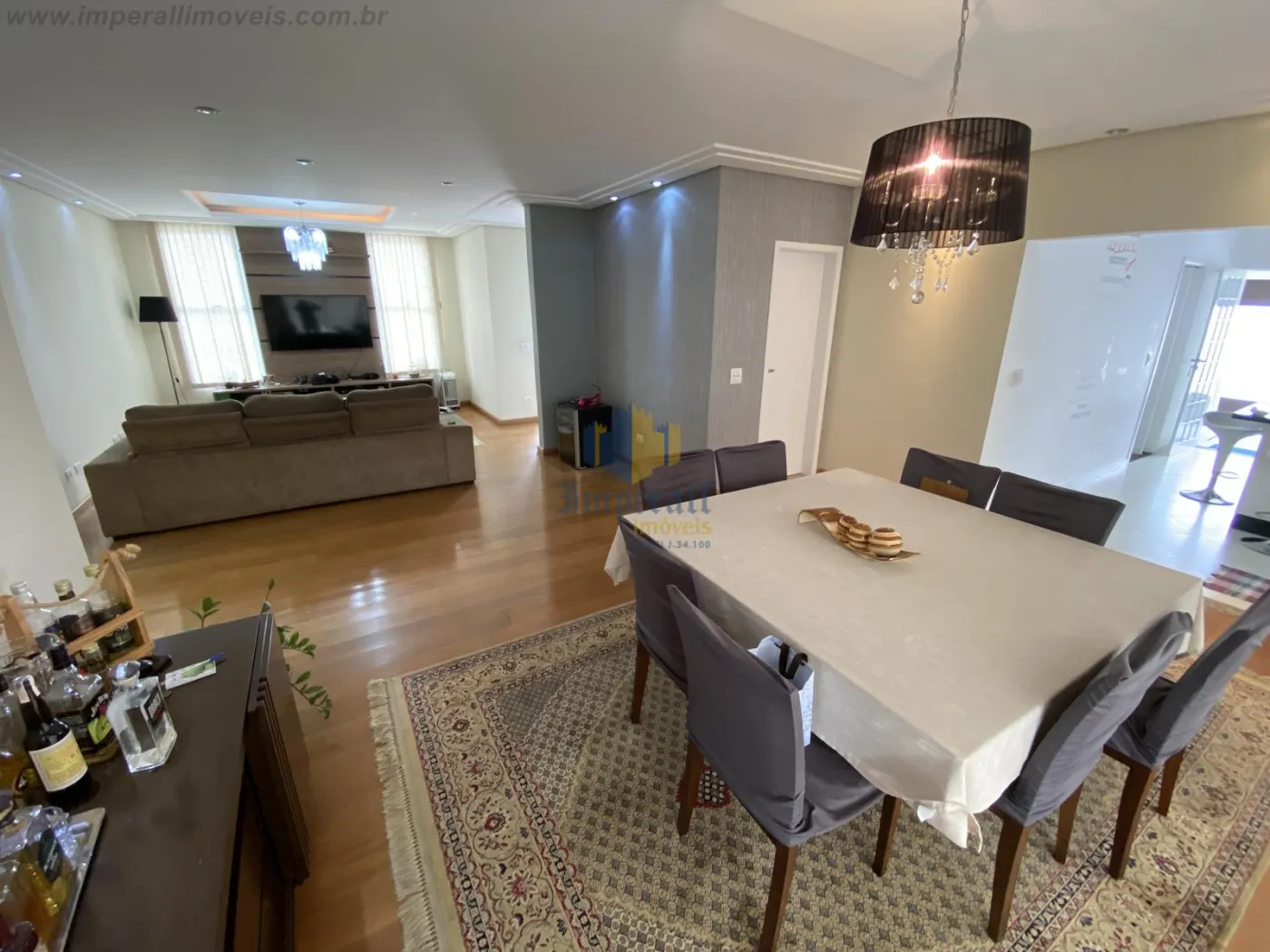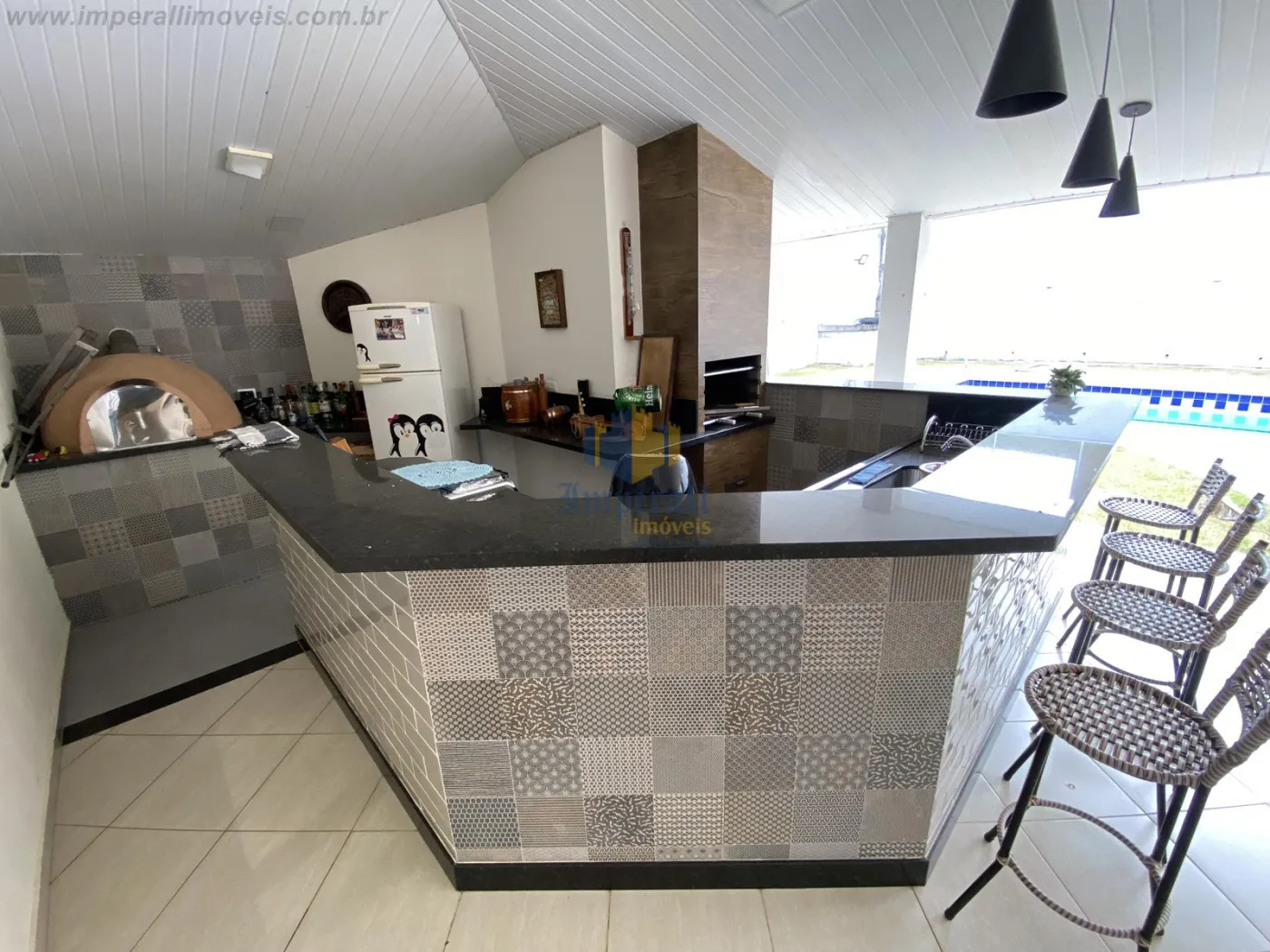 São 4 dormitórios sendo 1 suíte closet, 1 banheiro social, lavabo, ampla sala de 2 ambientes integrado com a cozinha, cozinha planejada, área de serviços com lavanderia, despensa, ampla área externa com churrasqueira e forno de pizza, quintal e piscina e 1 banheiro externo.