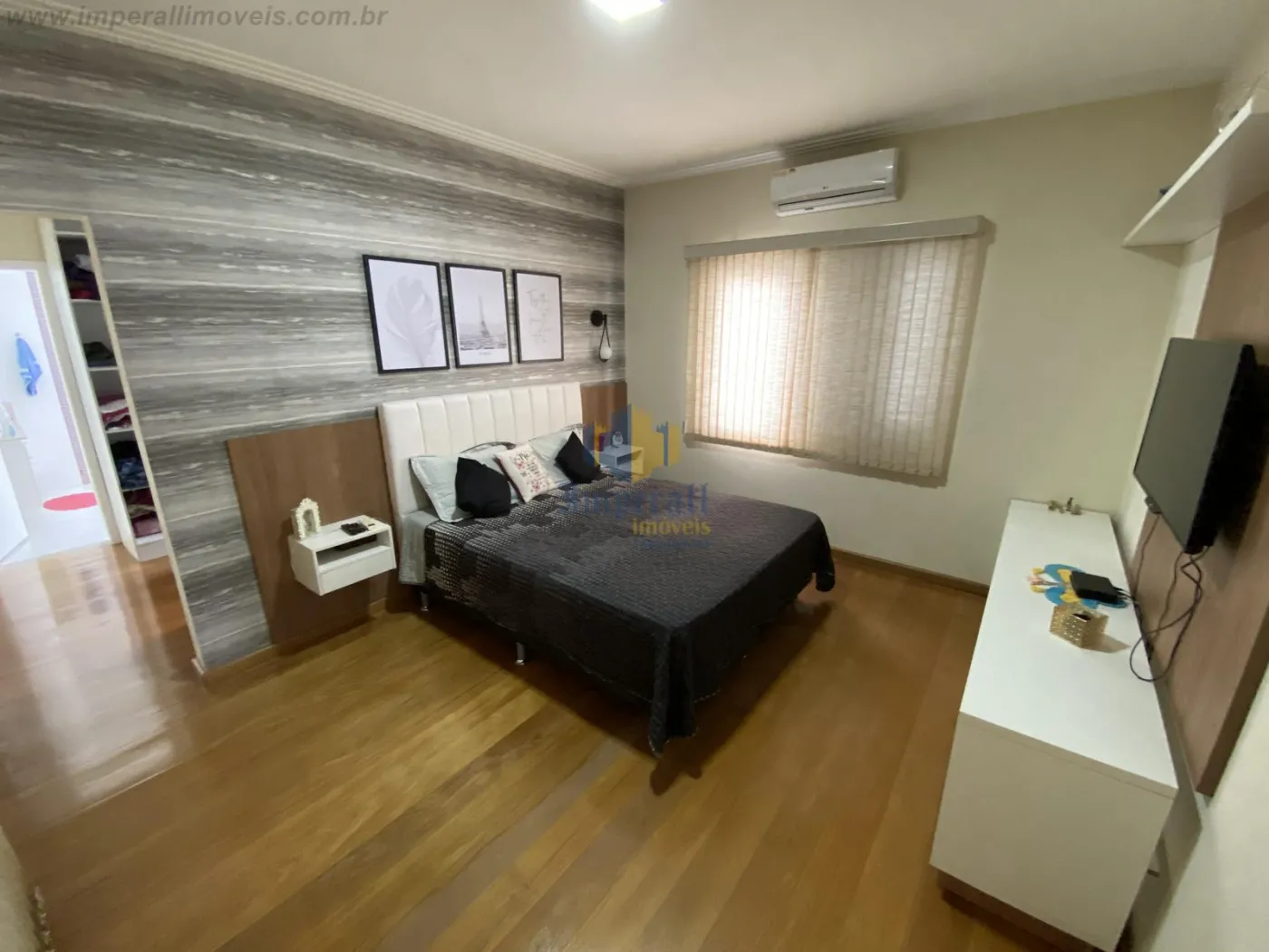 Casa com placas de energia solar, piso de madeira, sanca de gesso e ar condicionado na suíte + 1 dormitório.