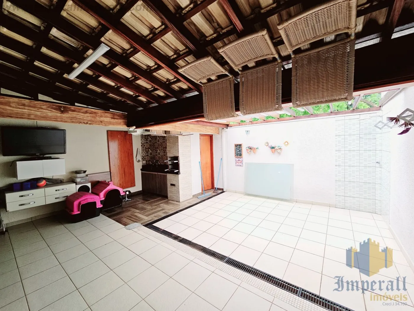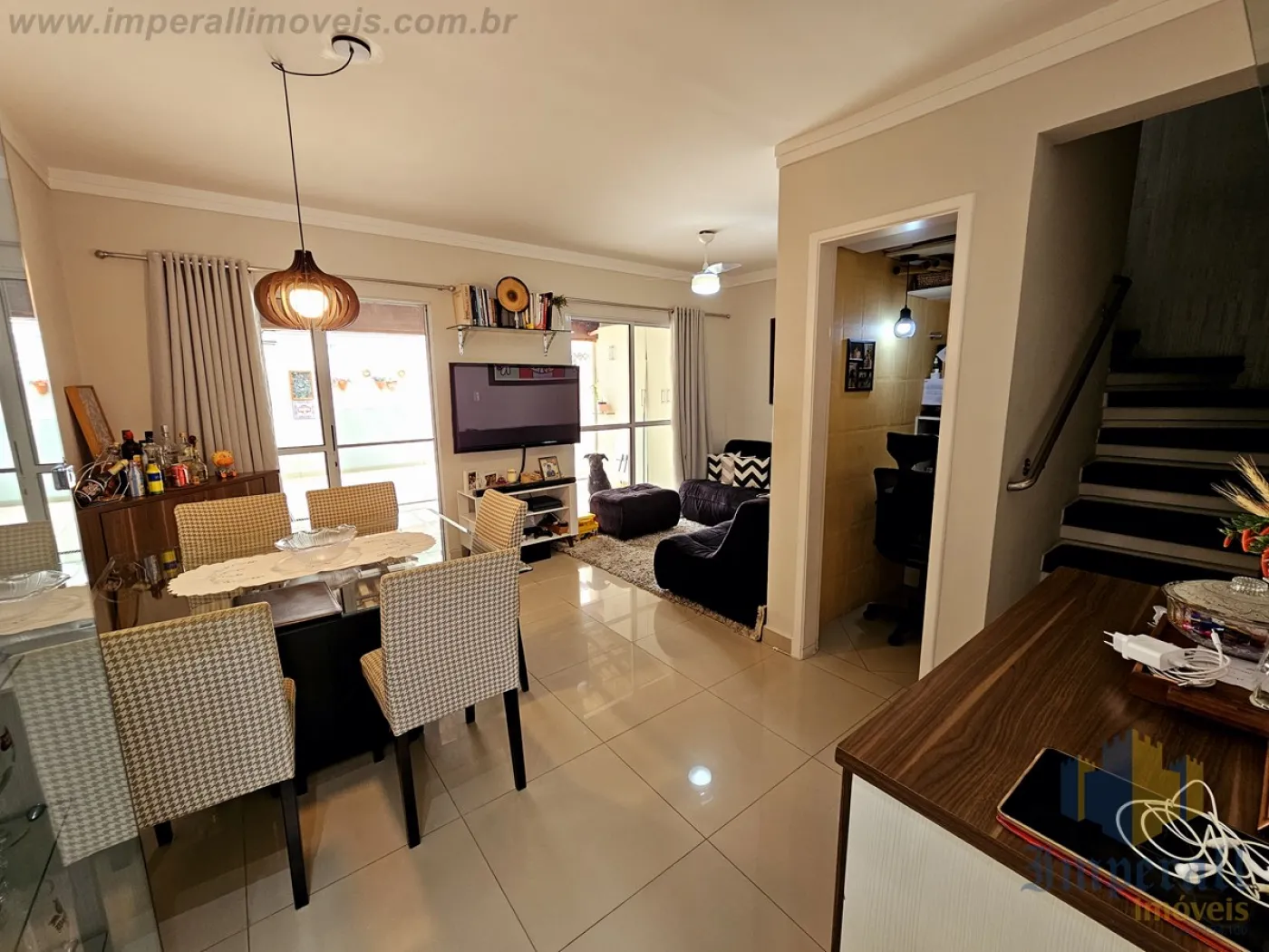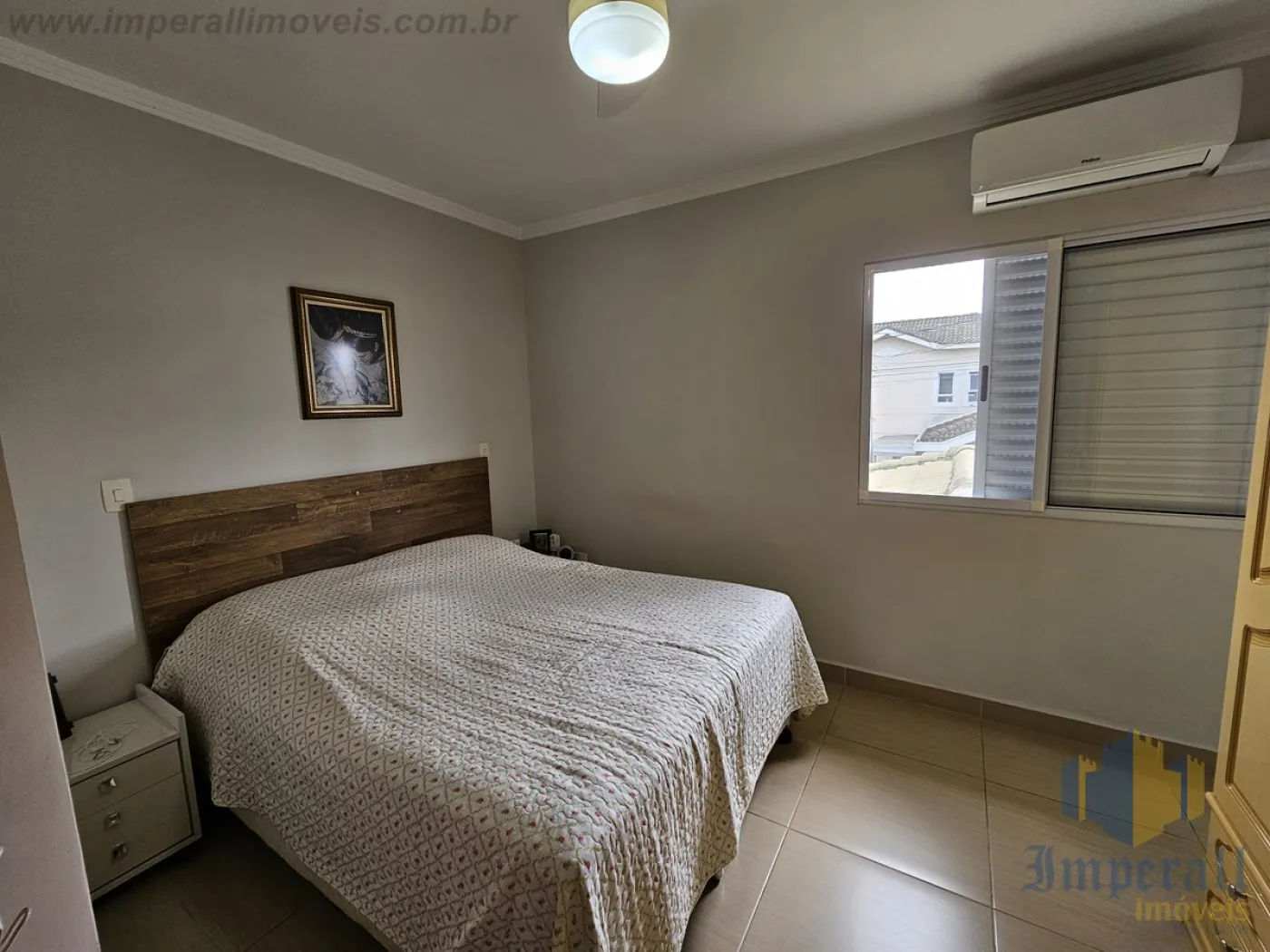 Lindo sobrado no condomínio Residence Club Villa Branca de 3 dormitórios sendo 1 suíte com ar condicionado, piso porcelanato, sala de 2 ambientes, lavabo, área de serviço, cozinha repleta de armários, banheiro social, corredor lateral e um belo quintal com ducha, churrasqueira e banheiro.