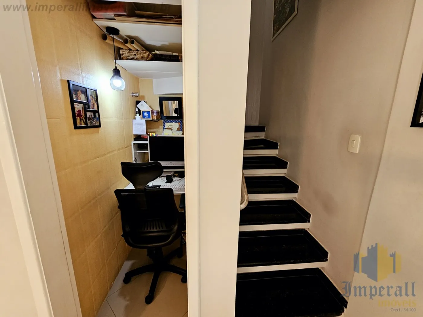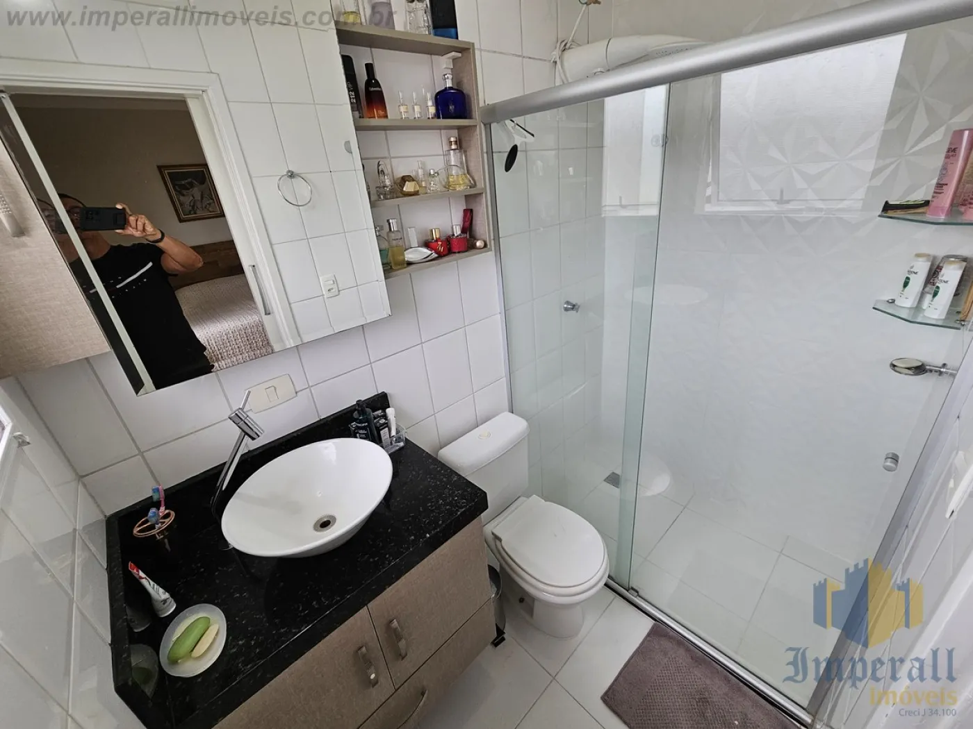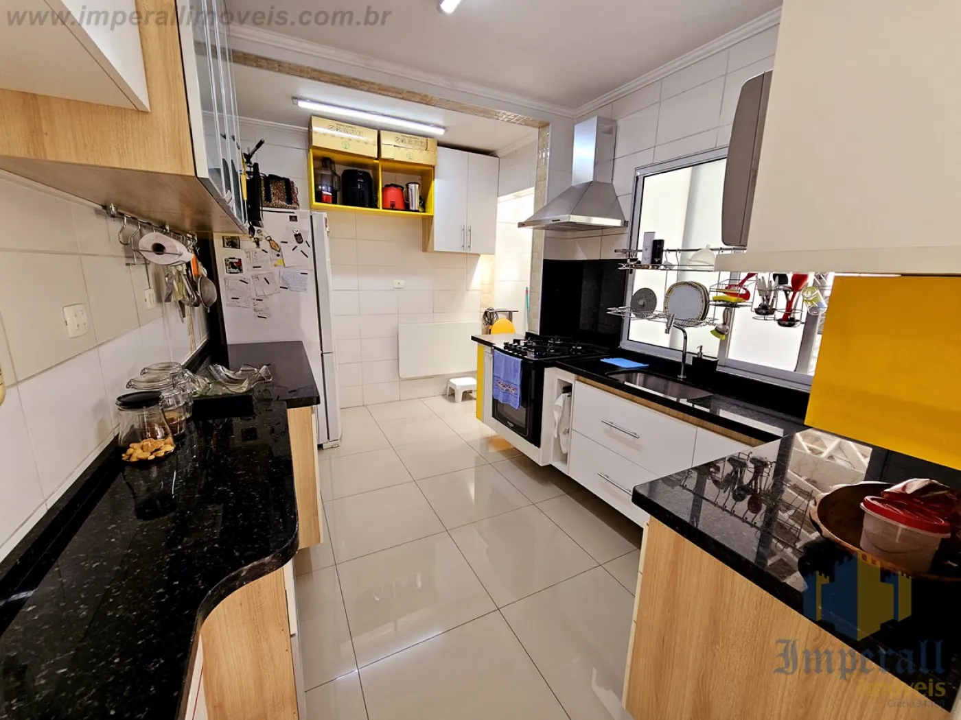 Lindo sobrado no condomínio Residence Club Villa Branca de 3 dormitórios sendo 1 suíte com ar condicionado, piso porcelanato, sala de 2 ambientes, lavabo, área de serviço, cozinha repleta de armários, banheiro social, corredor lateral e um belo quintal com ducha, churrasqueira e banheiro.