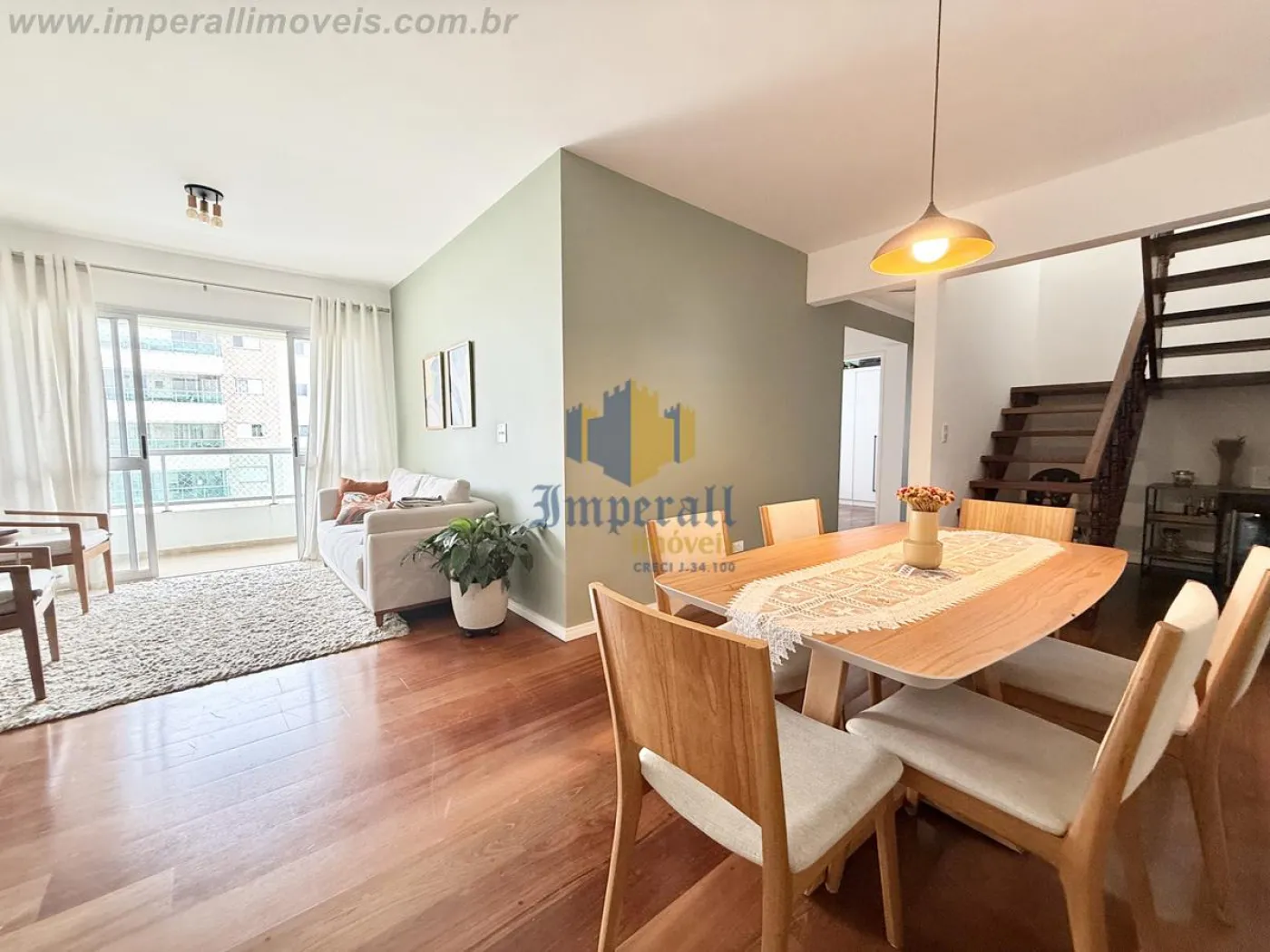 Lindo Apartamento Cobertura Duplex de 214m² com 3 quartos com armários sendo 1 suíte (mais um quarto no andar de cima que está configurado como sala de TV), cozinha ampla com armários, banheiro social, área de serviço, sacada, 2 vagas de garagem.