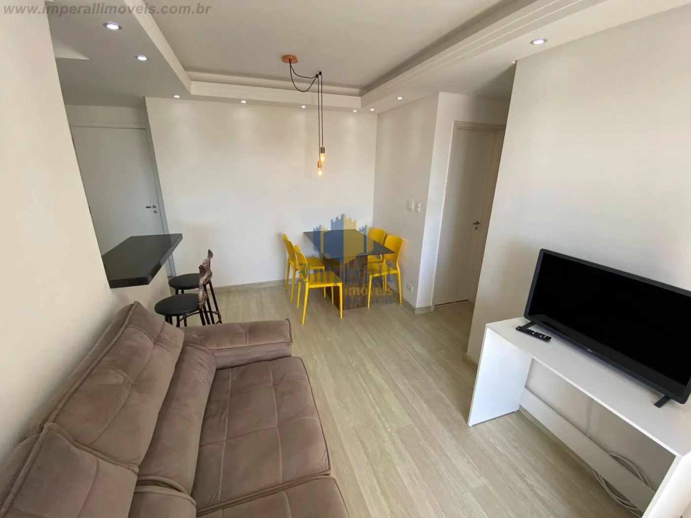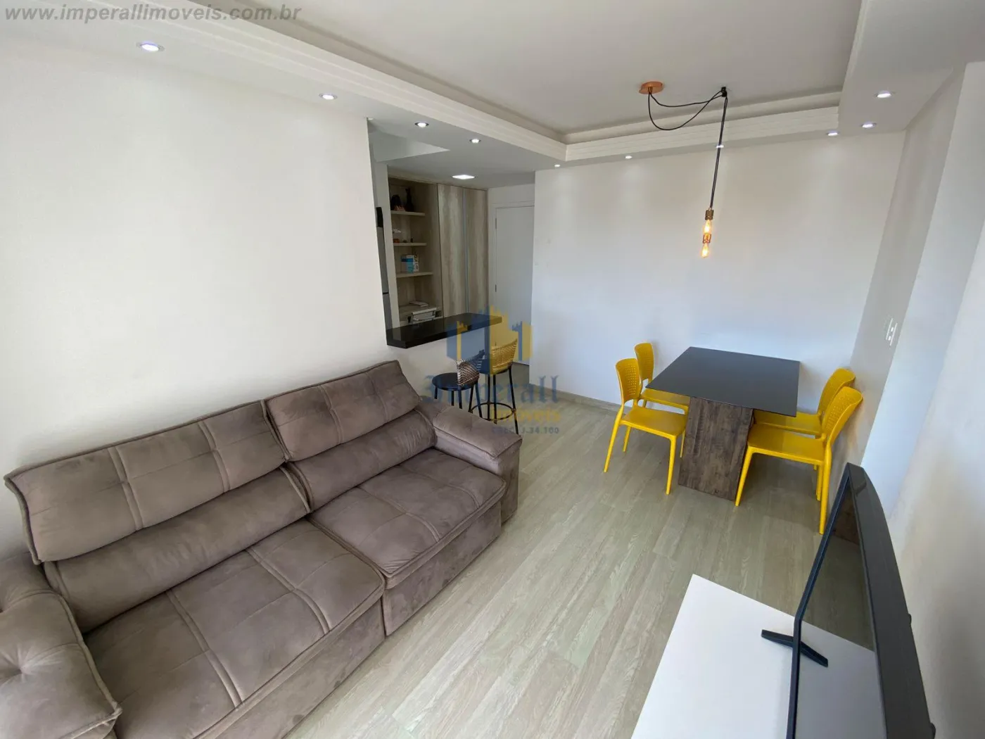 São 2 dormitórios sendo 1 suíte, ambos dormitórios com armários planejados, piso laminado, sala de 2 ambientes, sanca de gesso com iluminação de led, varanda, cozinha americana planejada e área de serviços e hobby box.