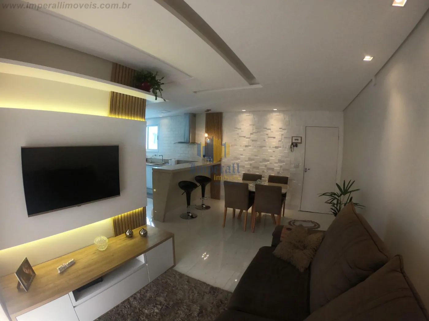 São 3 dormitórios sendo 1 suíte, 2 dormitórios com armários planejados, sala de 2 ambientes integrada com a cozinha, varanda gourmet, cozinha com armários planejados, teto rebaixado com luzes de led.