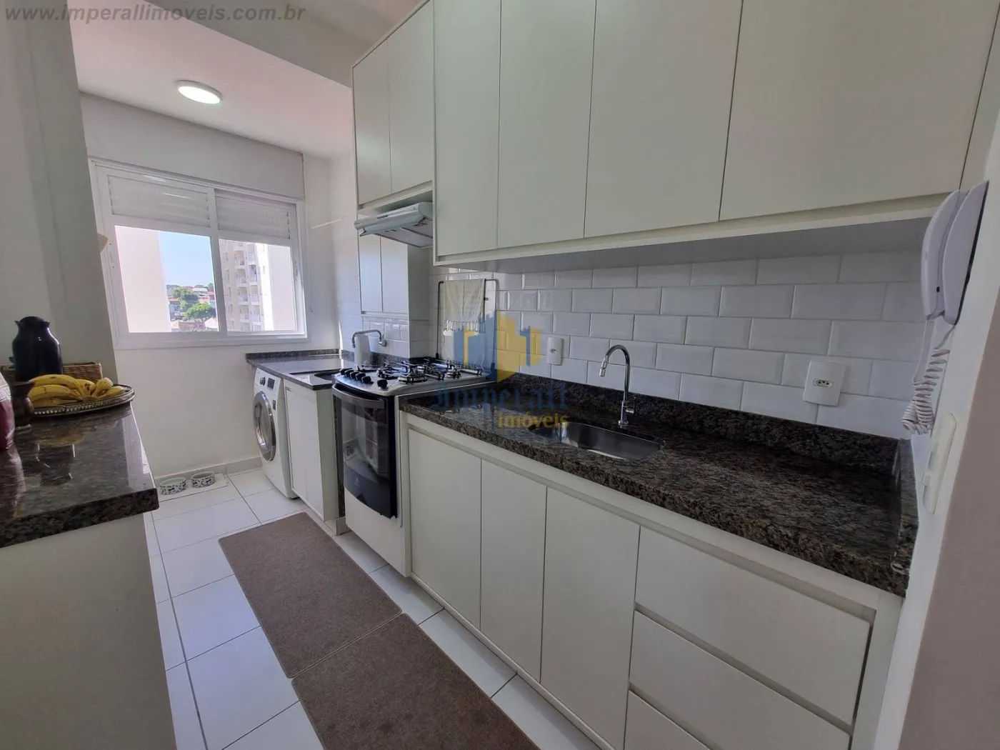 São 2 dormitórios planejados, sala de 2 ambientes, 1 banheiro social, cozinha planejada integrada com área de serviços. (ar condicionado na sala)