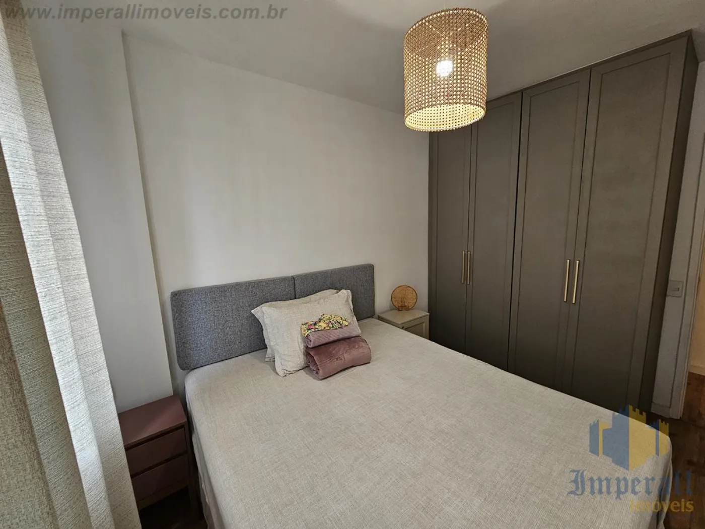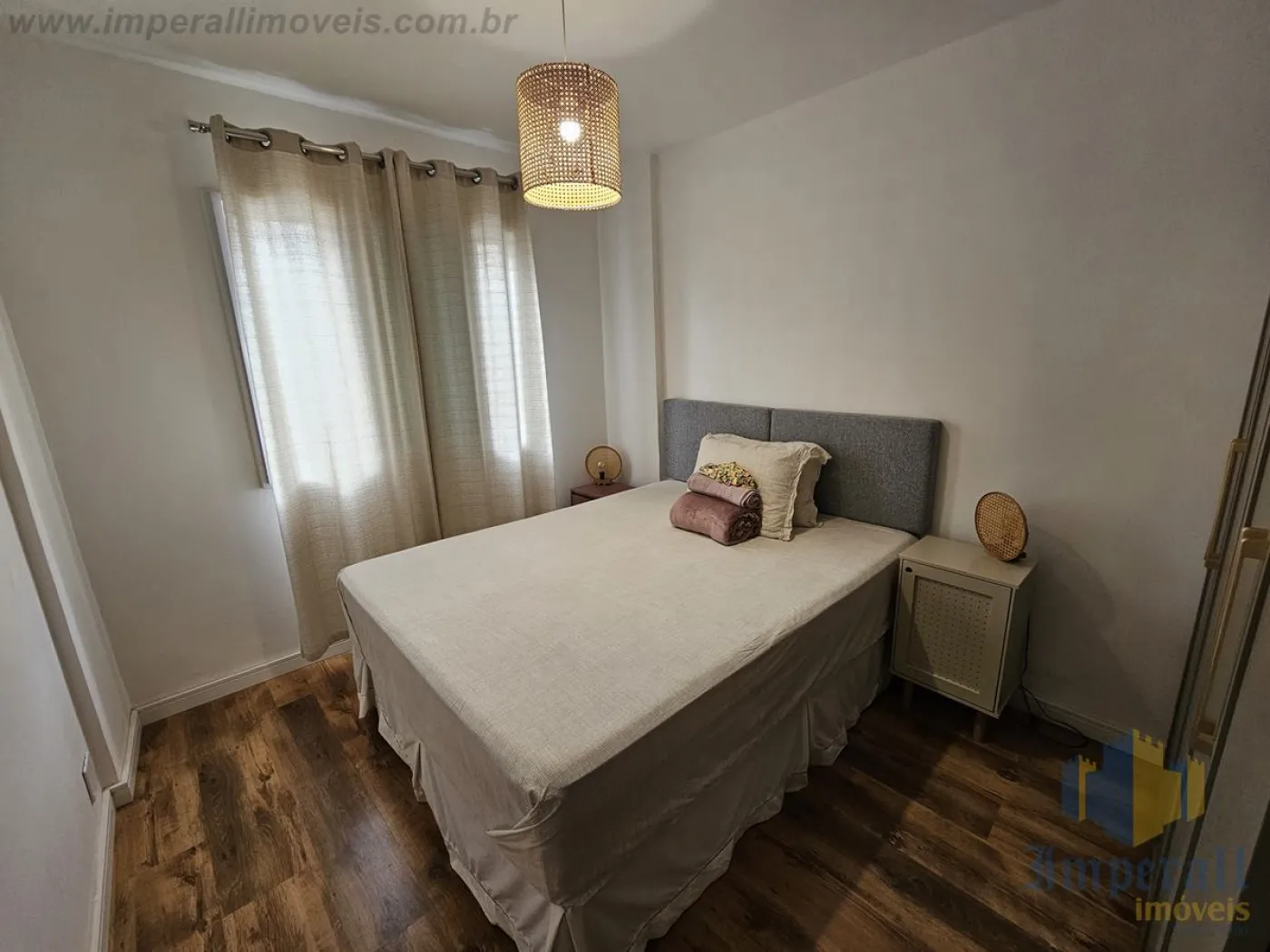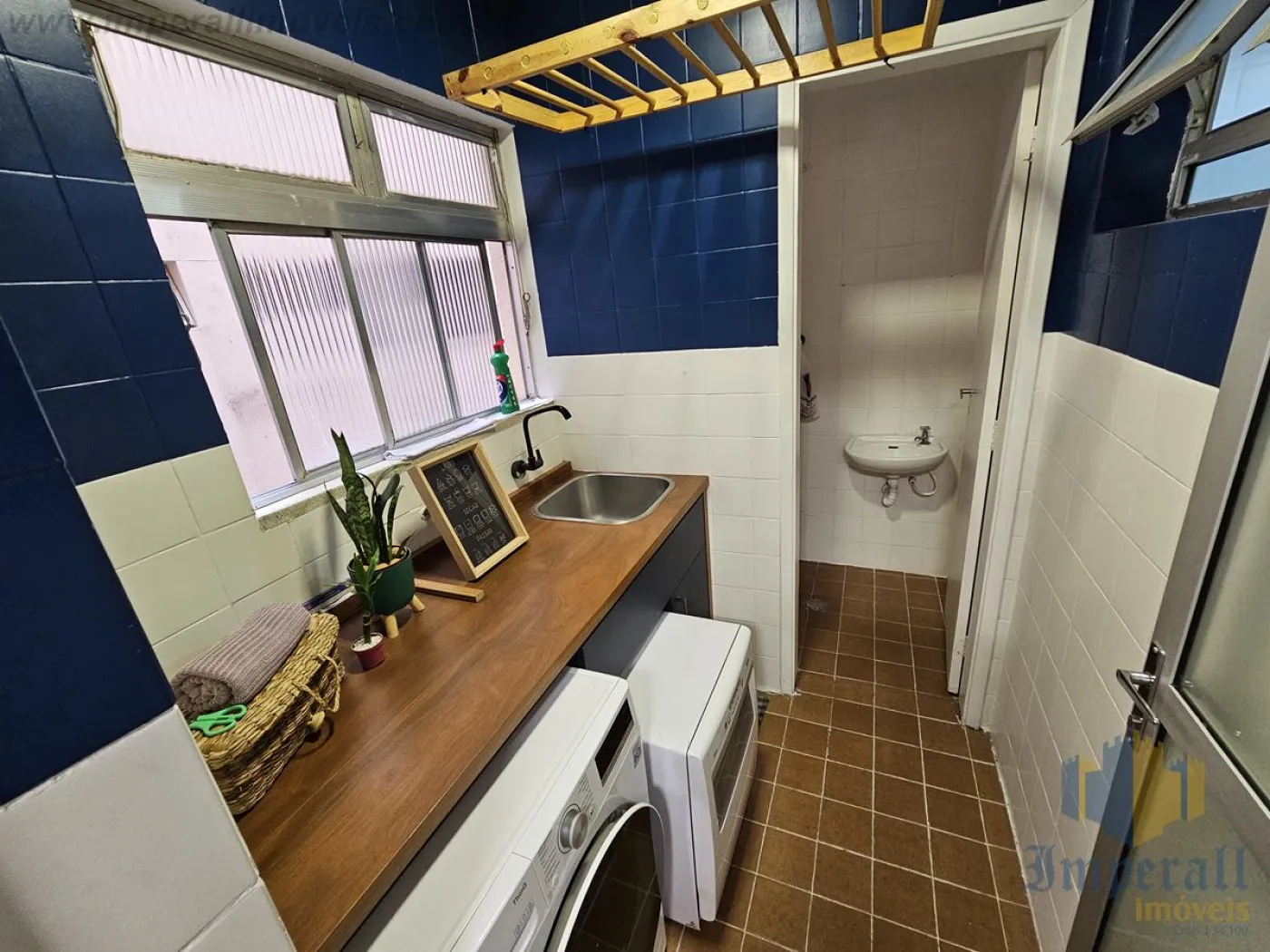 O imóvel dispõe de dois quartos, sendo um deles equipado com guarda-roupa planejado, mesas de cabeceira e cama padrão hotelaria, enquanto o segundo ambiente é atualmente utilizado como escritório, contando com iluminação planejada. Possui dois banheiros, sendo um amplo, com móveis planejados, e outro configurado como lavabo. A sala é ampla e bem distribuída, composta por mesa de jantar, aparador, rack e estante confeccionados em madeira de lei Cumaru, além de sofá e televisão LG, proporcionando sofisticação e conforto. A cozinha é espaçosa, com móveis planejados, pia em Cumaru em excelente estado, cooktop, forno elétrico, geladeira Brastemp e espaço para mesa, ideal para o dia a dia. Conta ainda com lavanderia funcional, equipada com bancada em Cumaru, móvel planejado, lava e seca LG e lava-louças Brastemp.