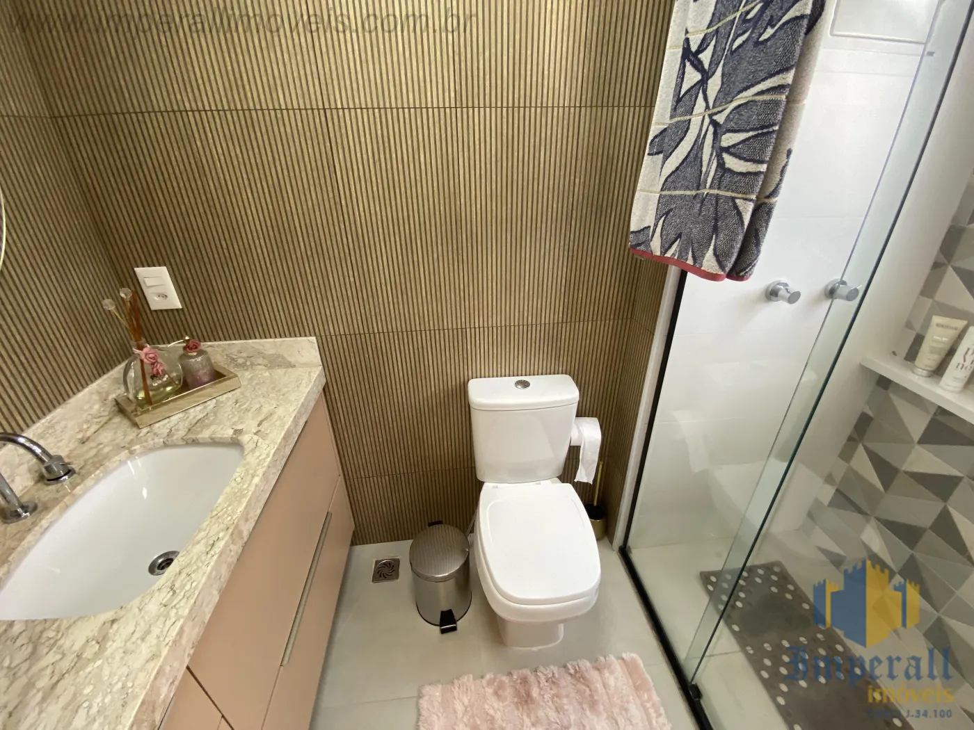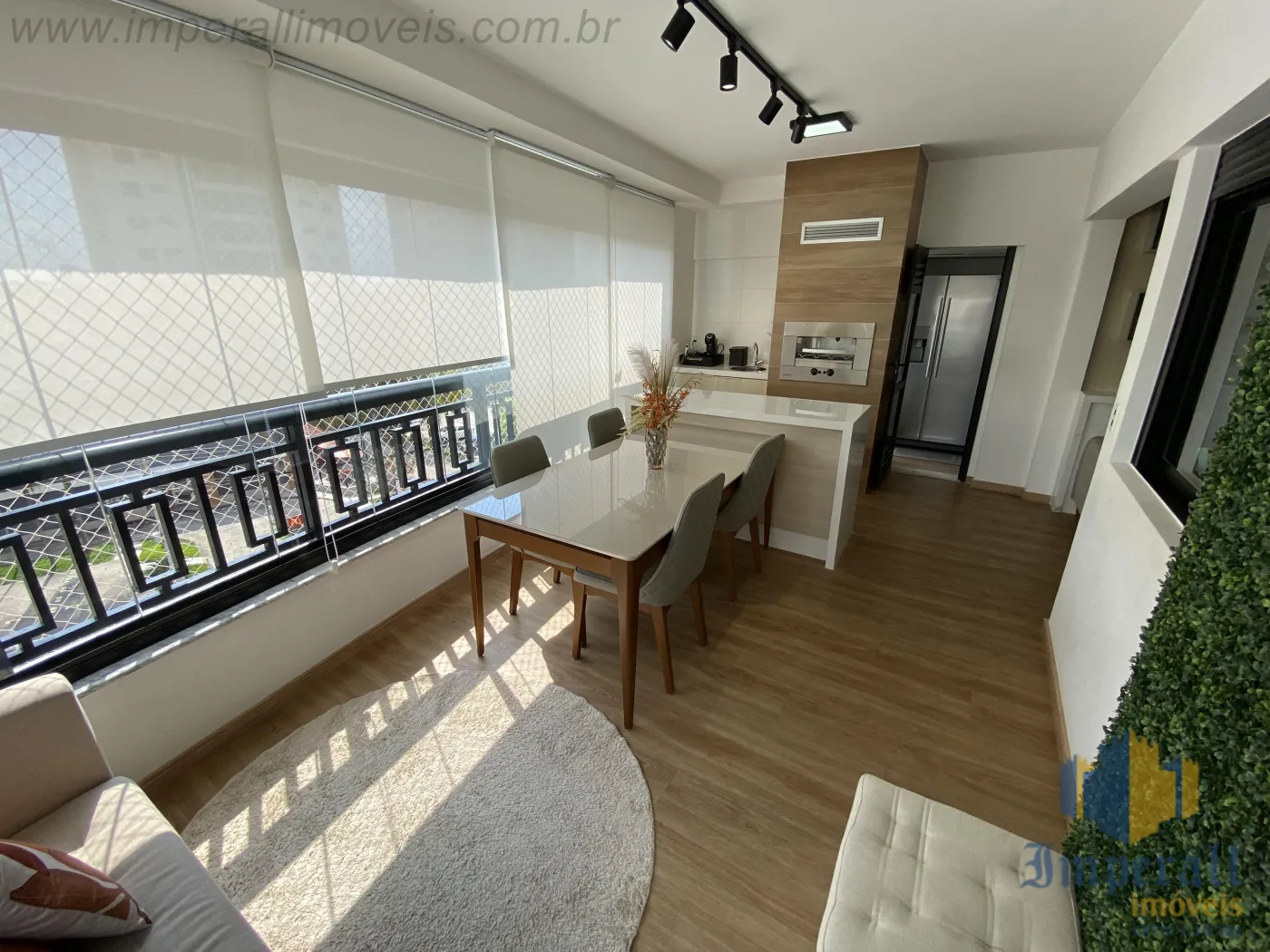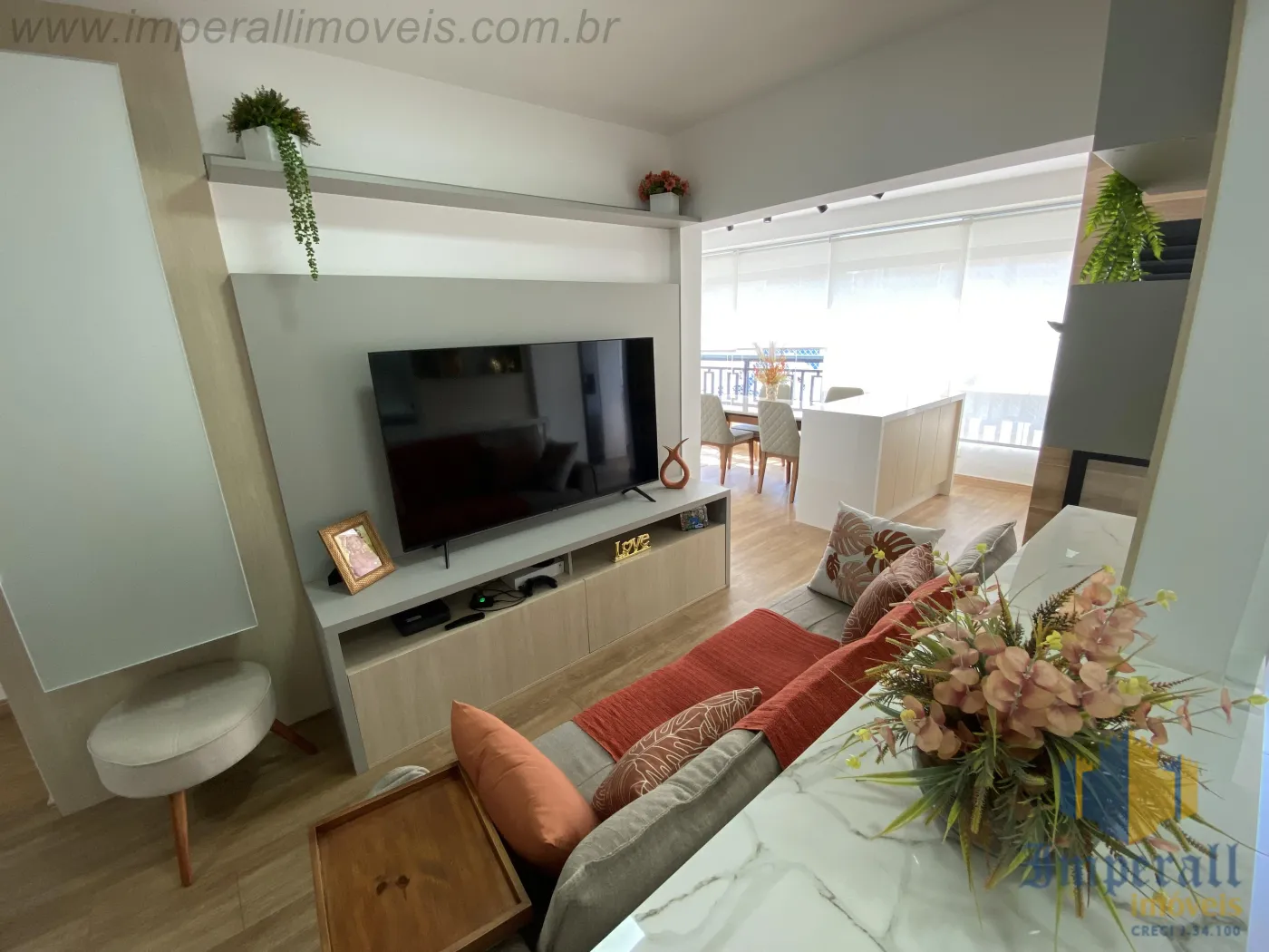São 3 dormitórios sendo 2 suítes, ambos dormitórios com armários planejados, 1 lavabo, sala de 2 ambientes, varanda gourmet com fechamento em vidro, cozinha americana com armários planejados e área de serviços.