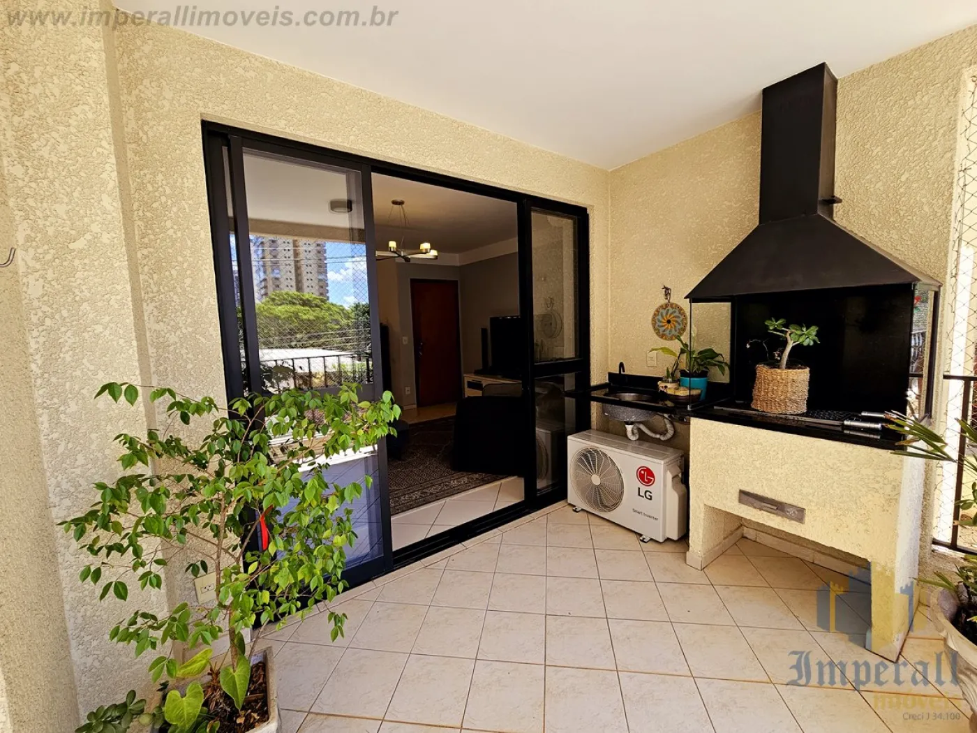 São 3 dormitórios sendo 1 suíte c/ closet e sacada, ar condicionado nos 3 dormitórios, escritório, área de serviço, banheiro de serviço, despensa, aquecimento à gás, piso de madeira, cozinha repleta de armários, sala de 2 ambientes, banheiro social, ar condicionado na sala e uma linda varanda gourmet com churrasqueira.