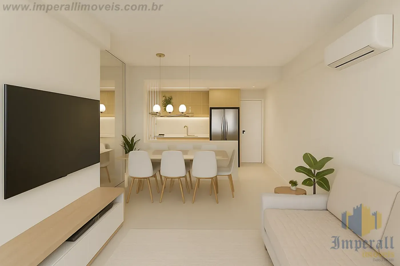 Lindo apartamento no Jardim Aquárius Sjc de 3 dormitórios sendo 1 suíte com ar condicionado, quartos com armários planejados, sala de 2 ambientes também com ar condicionado, sacada, piso porcelanato Porto Belo, área de serviço, banheiro social e uma cozinha completamente planejada.