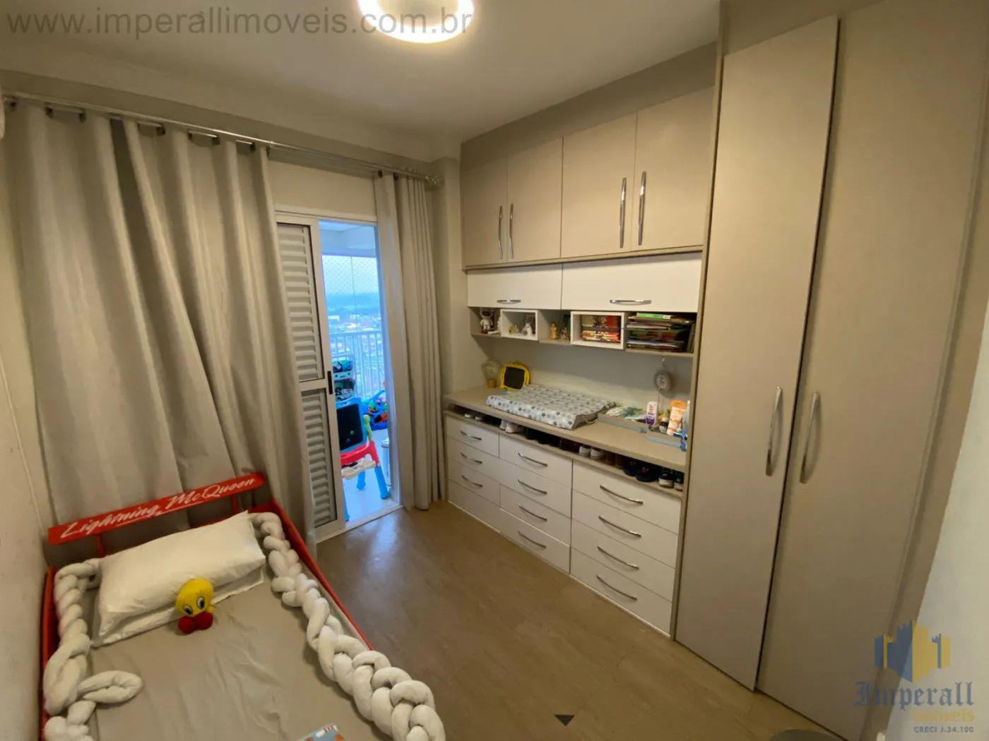 São 2 dormitórios sendo 1 suíte, planta de 3 dormitórios sendo possível a reversão para o terceiro quarto, ambos dormitórios com armários planejados, piso porcelanato, sanca de gesso, cozinha americana planejada, varanda gourmet com fechamento em vidro e vista livre.