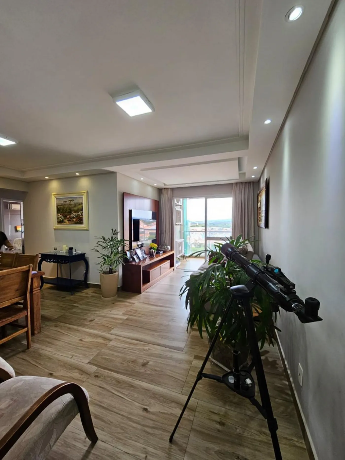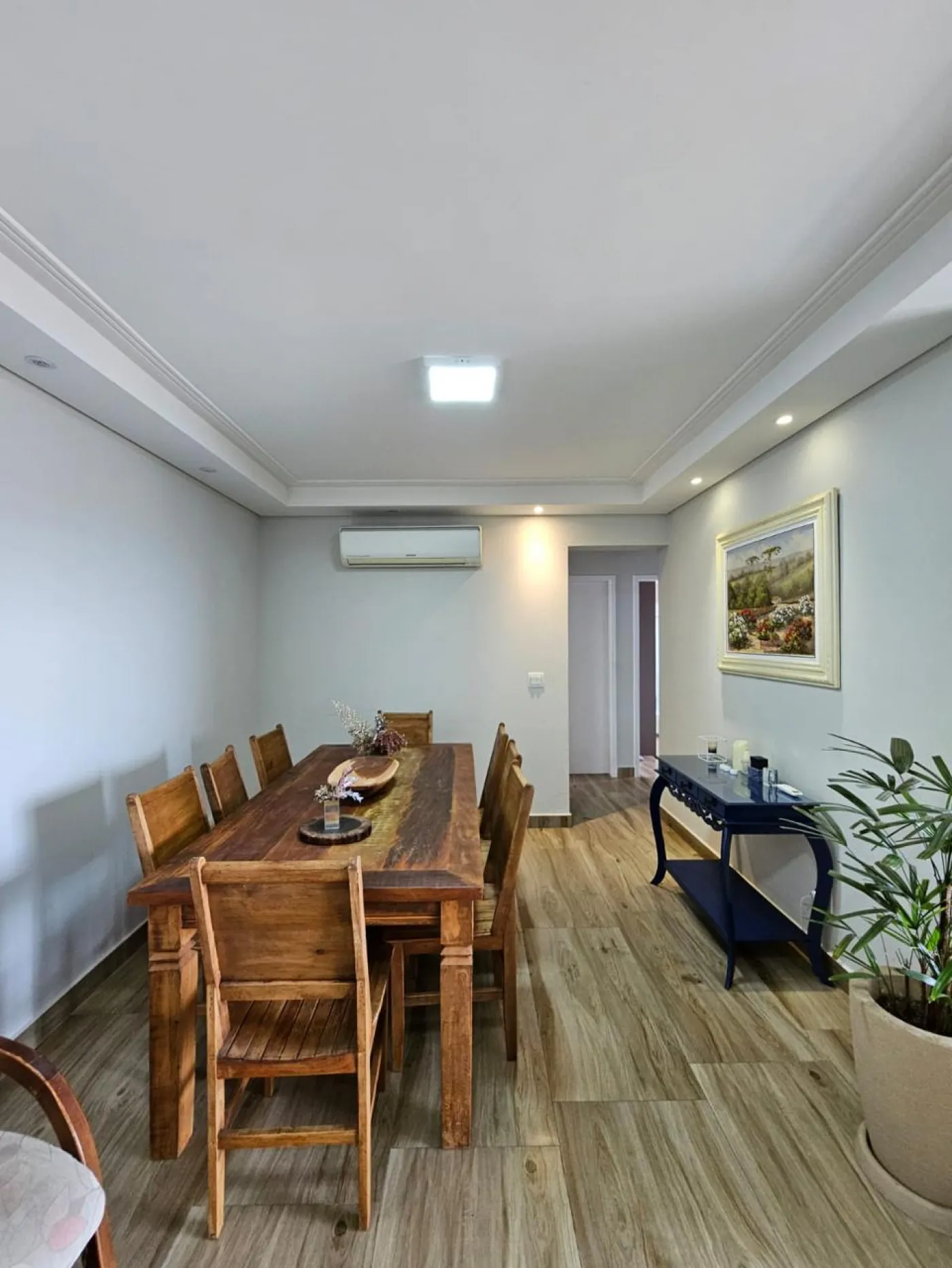 Apartamento com 3 dormitórios sendo 1 suíte com ar condicionado e com armários planejados, cozinha repleta de armários, área de serviço, banheiro social, sala bem espaçosa de 2 ambientes e com ar condicionado e uma sacada com vista permanente para o sol nascente.