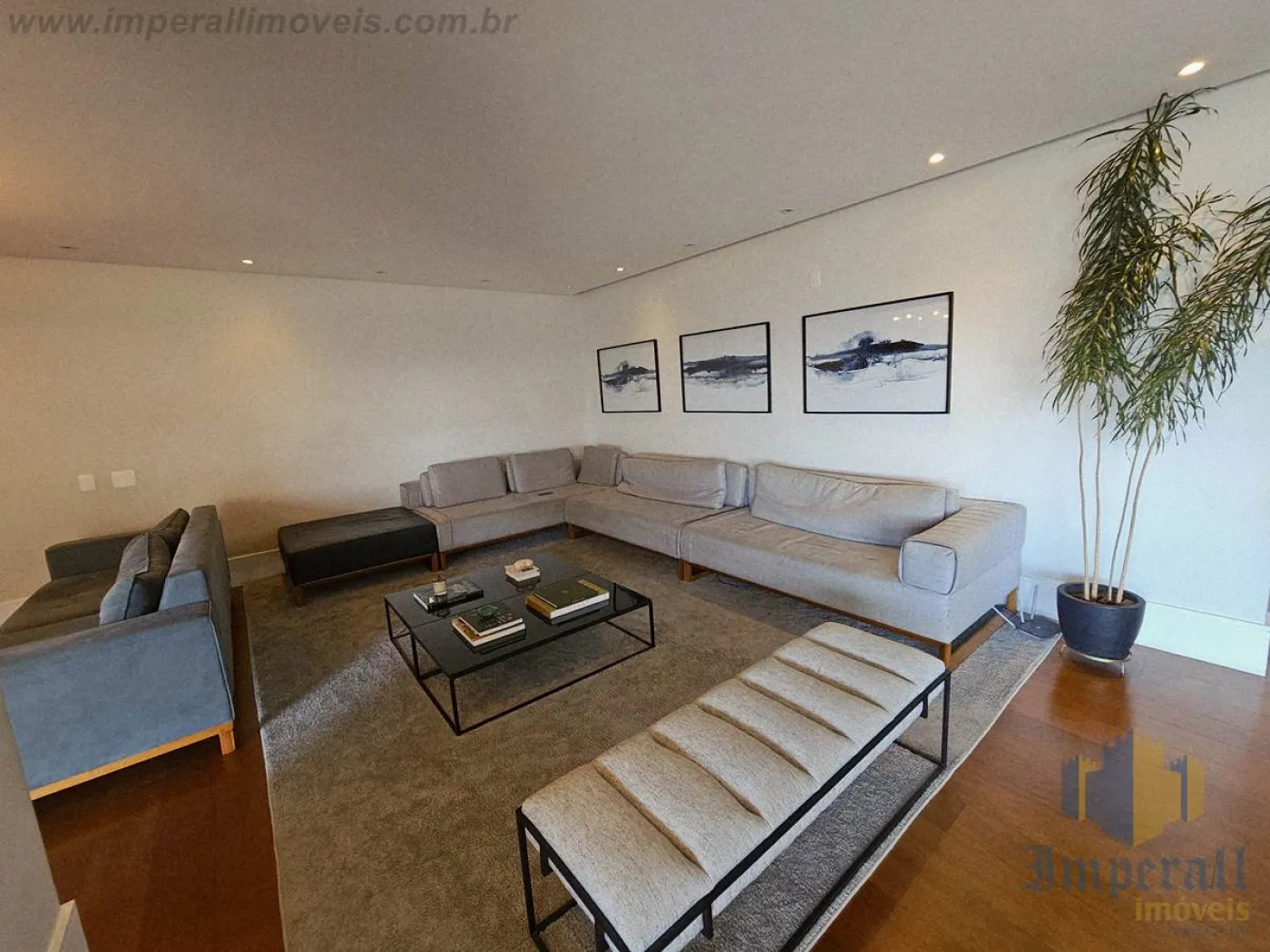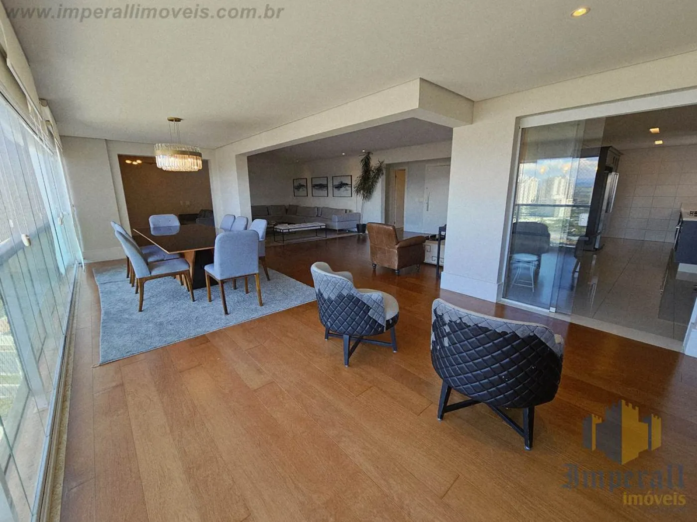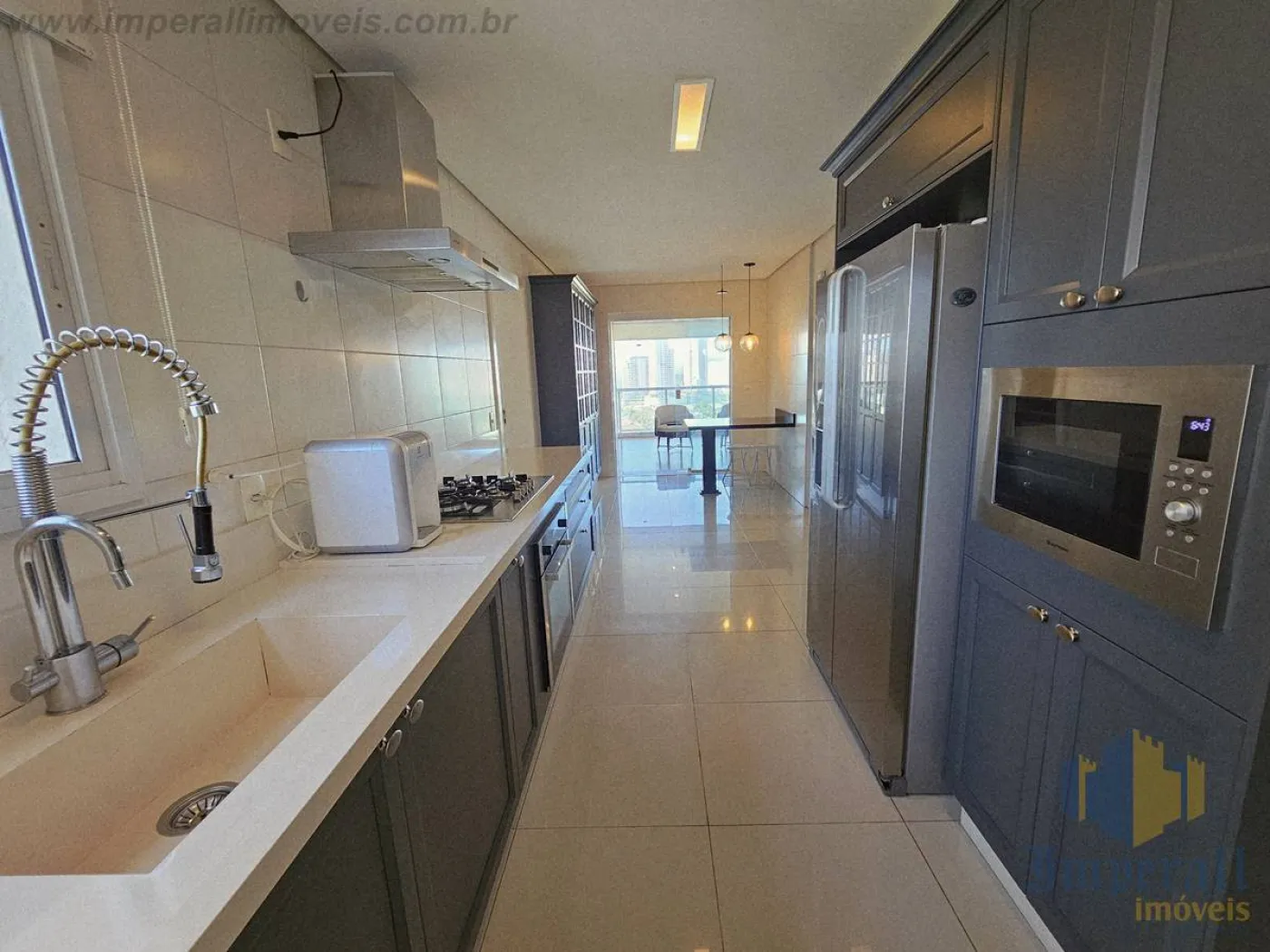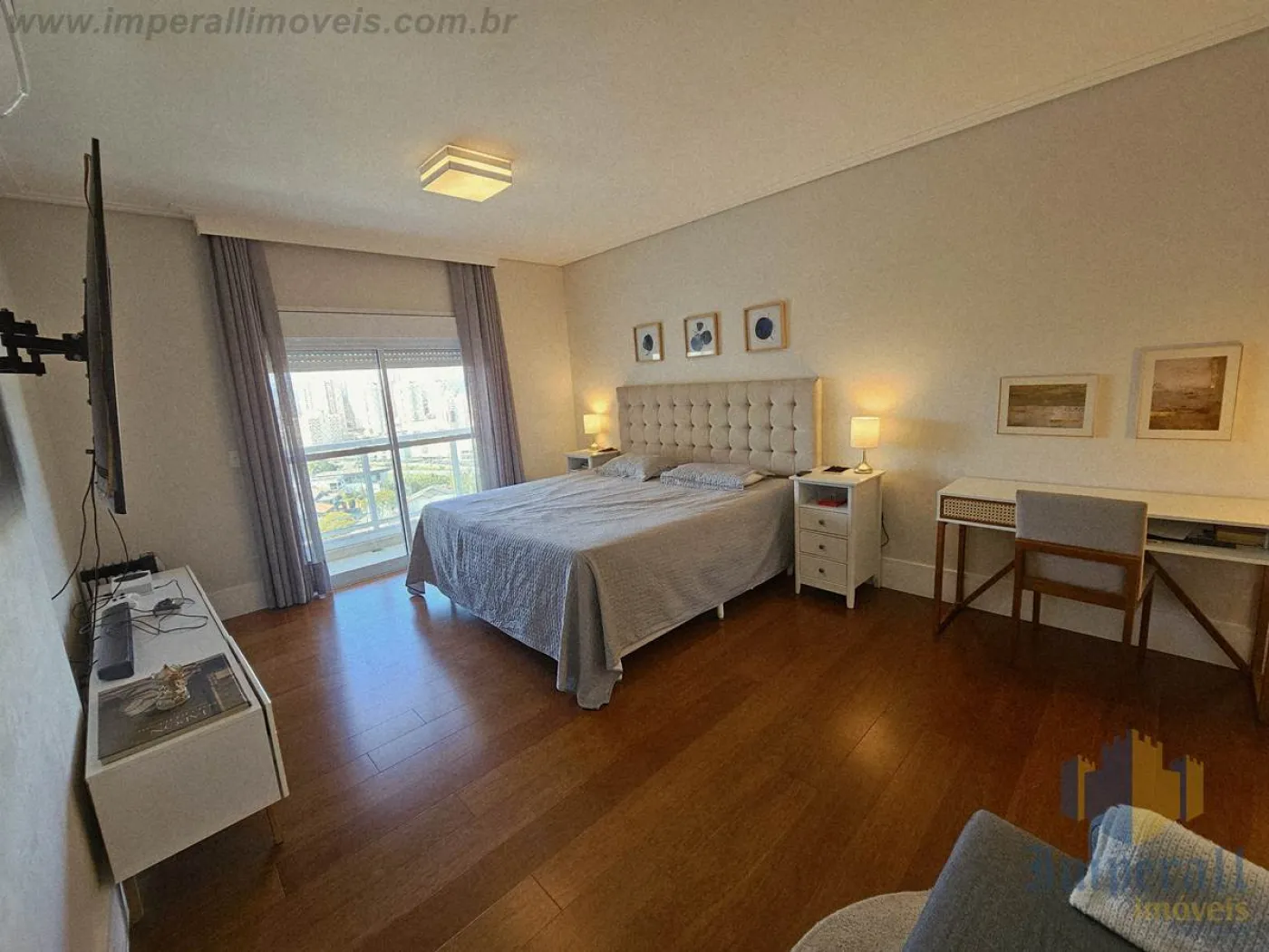 Sala amplíssima com sacada estendida e fechamento em cortina de vidro. Piso de madeira da conceituada Triângulo que adiciona elegância e conforto térmico ao ambiente. Biblioteca junto à lareira com TV, contando com o refinamento da marcenaria Florense sob medida na cor chumbo. Bar com marcenaria Florense sob medida em elegante cor carbono com espelhos bronze, também servindo de aparador em almoços e jantares. A churrasqueira foi retirada, sendo totalmente reversível (exaustão fechada com gesso). Mesa de jantar com 8 lugares em cristal e madeira, da marca BRETON. Sofá em L com 10 lugares todo em módulos com pufe de couro preto, também da marca BRETON. Tapetes sob medida da Mobile Top Prime. Lustres da biblioteca, sala de jantar (cristal) e hall (cristal) da tradicional Lustreco (SP). Hall privativo com espelhos bronze bisotados, fechadura eletrônica e elevador com senha para maior segurança. Cozinha ampla com marcenaria Florense na cor chumbo e bancada em Silestone Cosentino. Eletrodomésticos Elettromec (forno elétrico com convecção, cooktop e microondas). Suíte do casal amplíssima com closet Florense (uma suíte foi transformada em closet, sendo totalmente reversível). Área de serviço com armários. Despensa com prateleiras. Hobby box amplo com prateleiras.