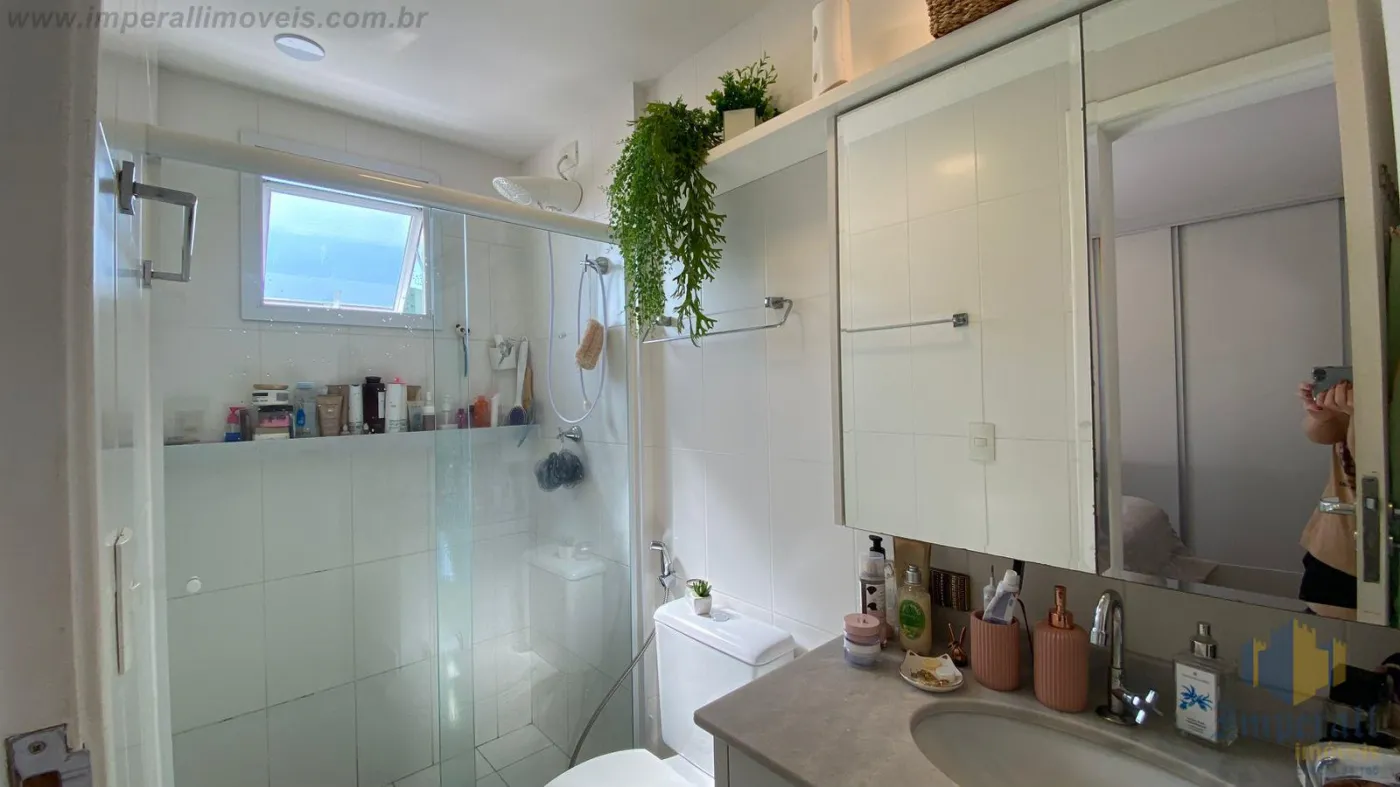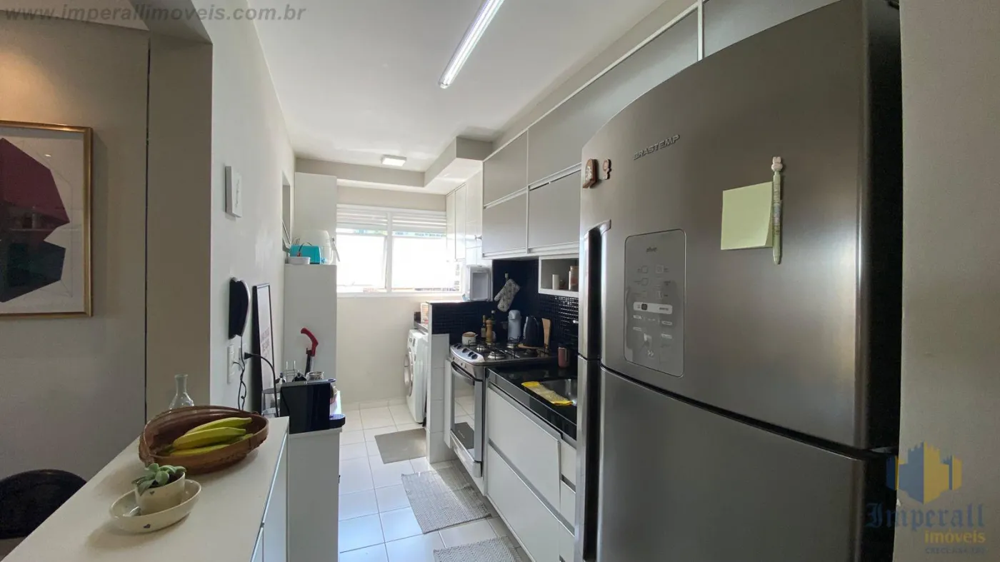 São 2 dormitórios sendo 1 suíte, 1 banheiro social, sala de 2 ambientes, varanda, cozinha toda planejada e área de serviços com armários. Ambientes 100% planejados: cozinha, lavanderia, quartos e banheiros com móveis sob medida.