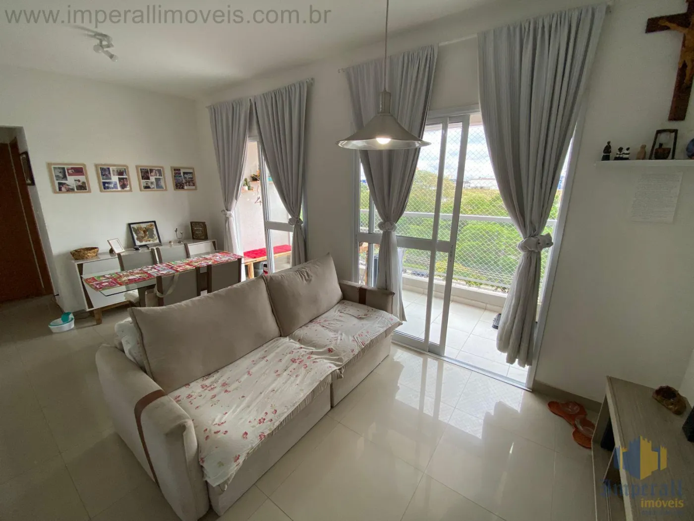 São 2 dormitórios sendo 1 suíte, 1 banheiro social, ampla sala de 2 ambientes, varanda gourmet, cozinha americana com armários e área de serviço. Piso porcelanato e telas de proteção.