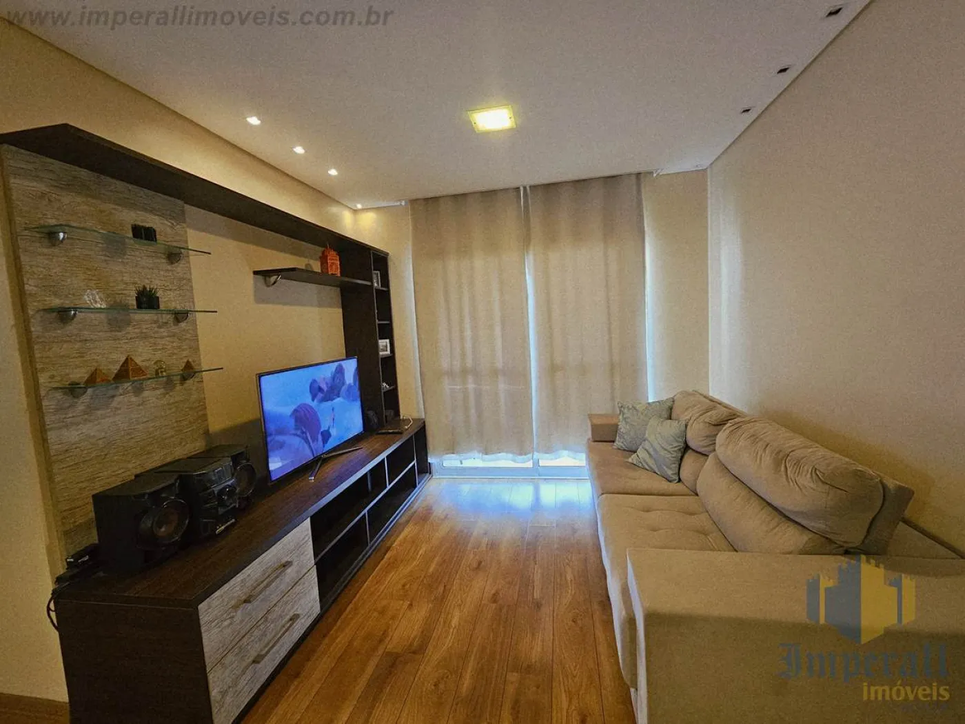 Apartamento Edifício Torres do Parque 87 m² Parque Industrial Sjc. São 3 dormitórios sendo 1 suíte com armários planejados, banheiro social, sala de 2 ambientes, sacada com vista definitiva, área de serviço já com aparelho de aquecimento à gás instalado e uma cozinha no estilo americana repleta de armários.