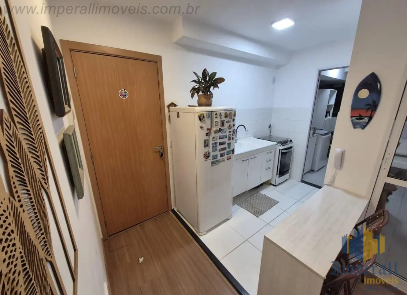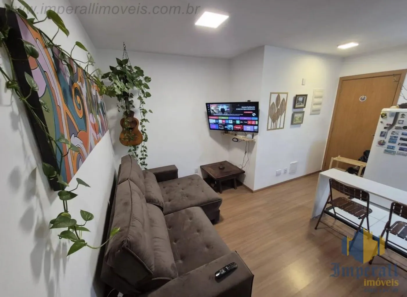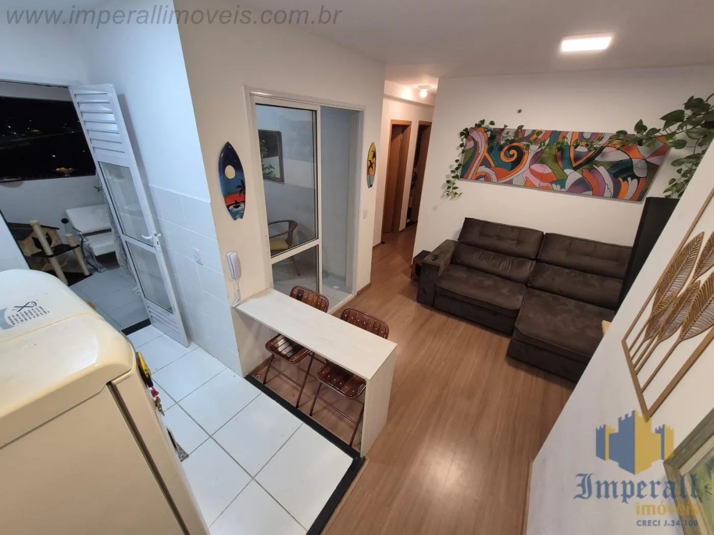 São 3 dormitórios sendo 1 suíte, sala de 2 ambientes, cozinha americana com armários, 1 banheiro social, varanda e área de serviços.