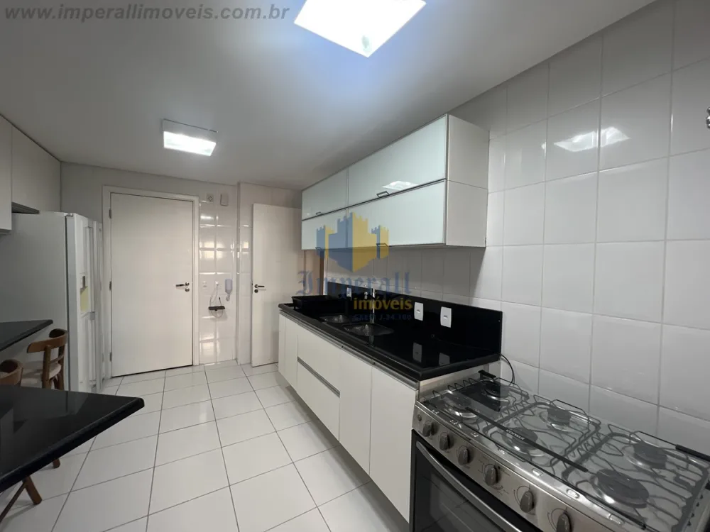 São 2 suítes, suíte principal com varanda, sala ampliada, varanda com churrasqueira, lavabo, cozinha planejada, área de serviço e banheiro de serviço.