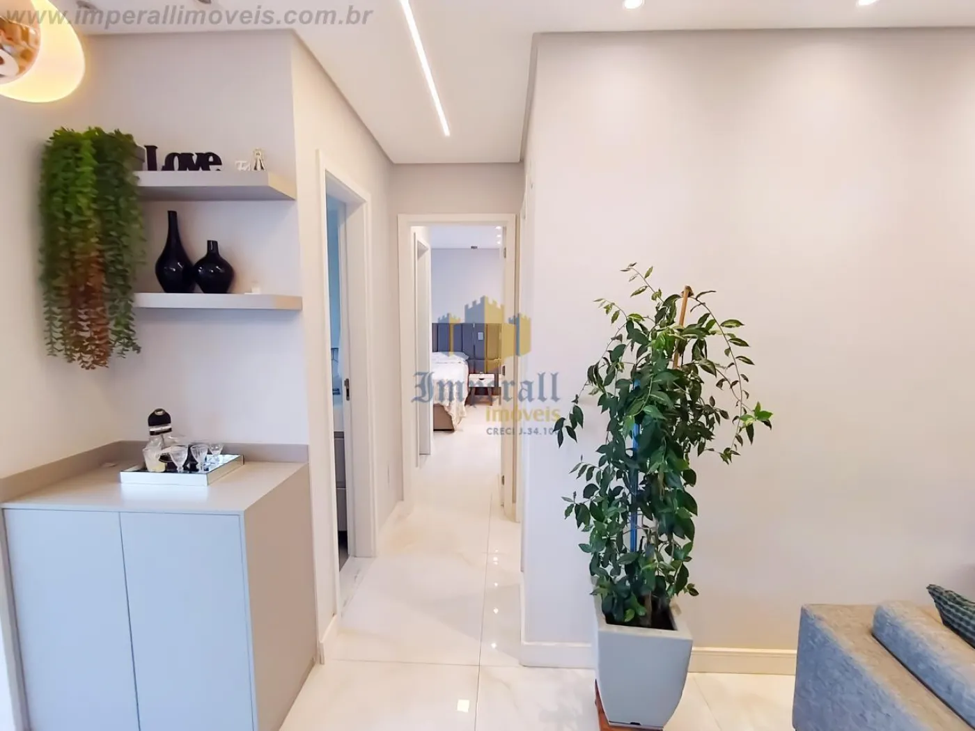 São 2 dormitórios sendo 1 suíte, apartamento com móveis planejados de primeira qualidade, piso porcelanato, sanca de gesso e luzes de led, sala integrada com a cozinha e varanda, cozinha americana com armários de primeira qualidade, área de serviços.