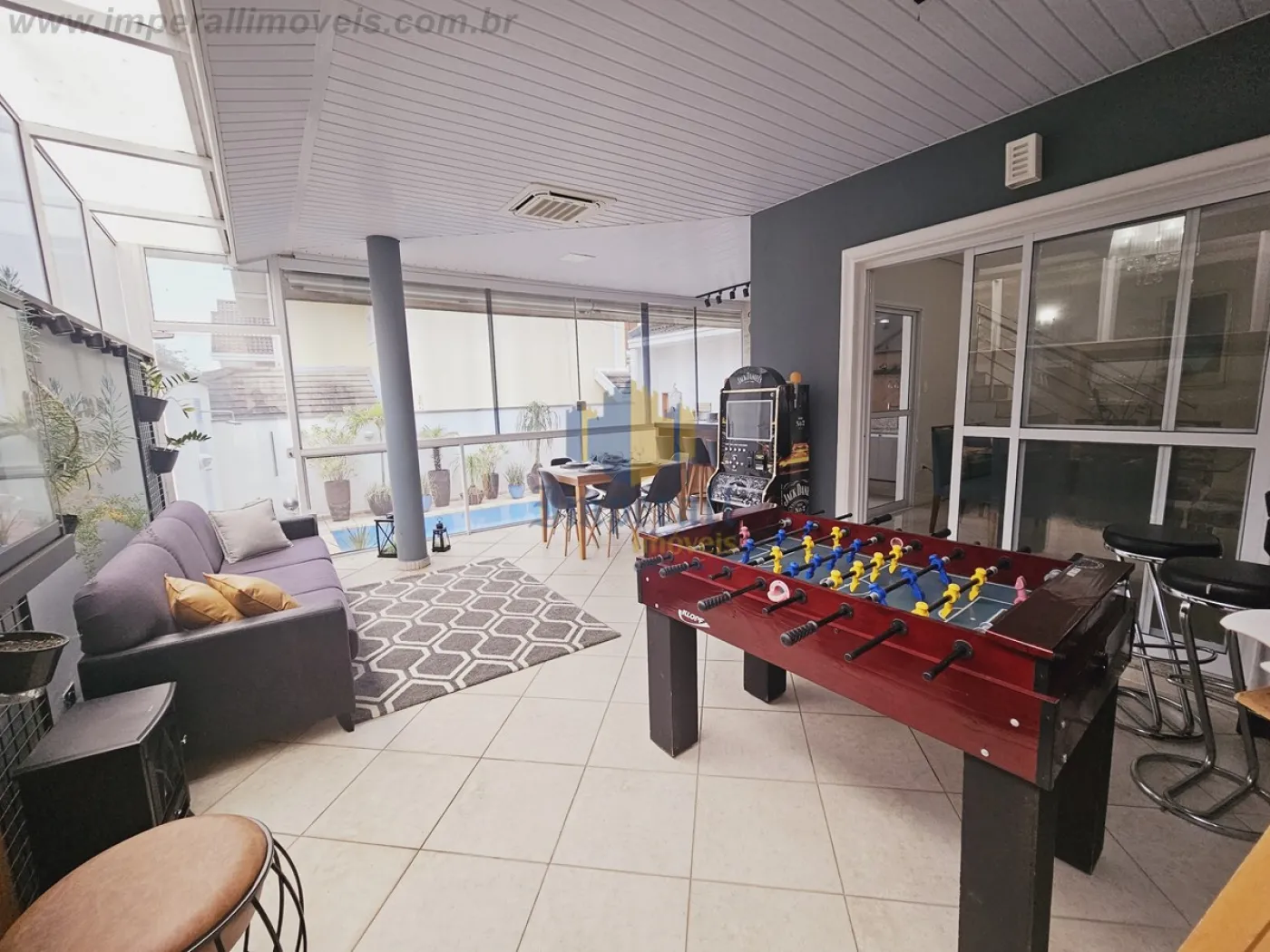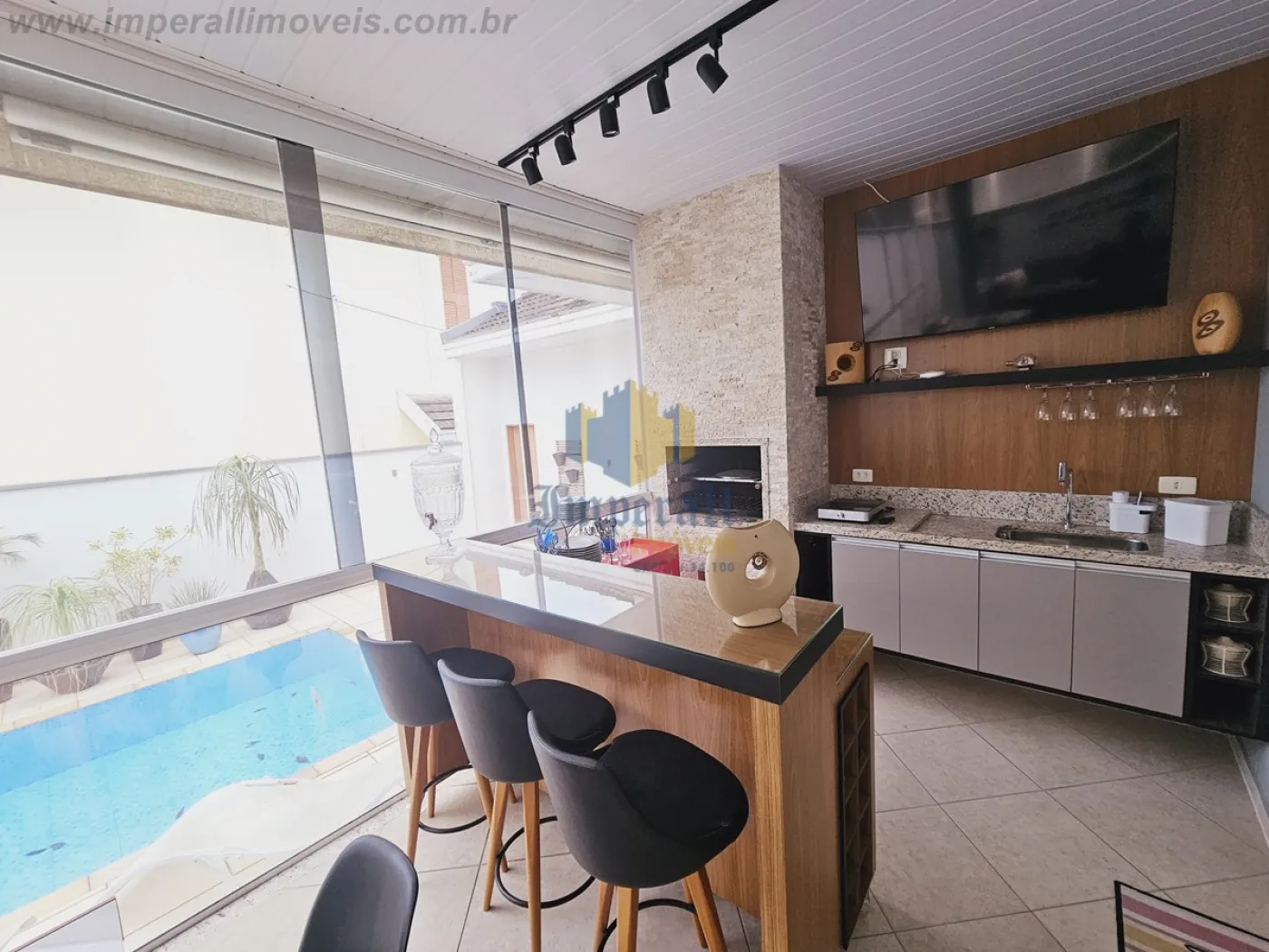 - Área gourmet coberta, fechada com vidro mantendo o ambiente aquecido no inverno,