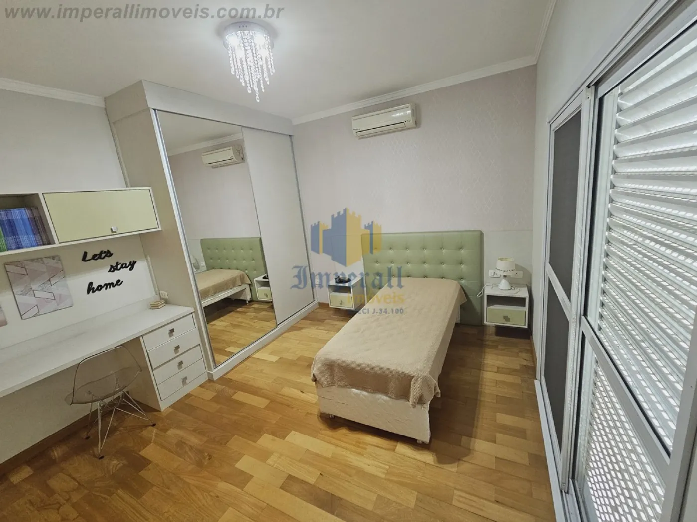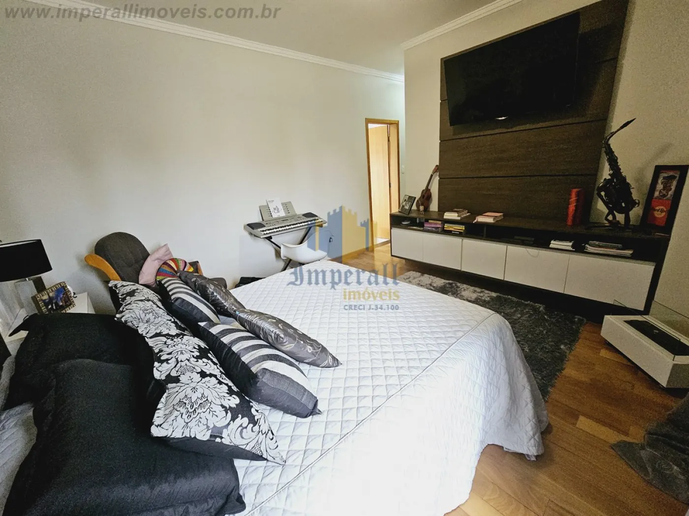 São 4 suítes com armários planejados, ar condicionado e varanda, sendo a suíte master com closet e banheira de hidromassagem. Sala de TV no mezanino.
