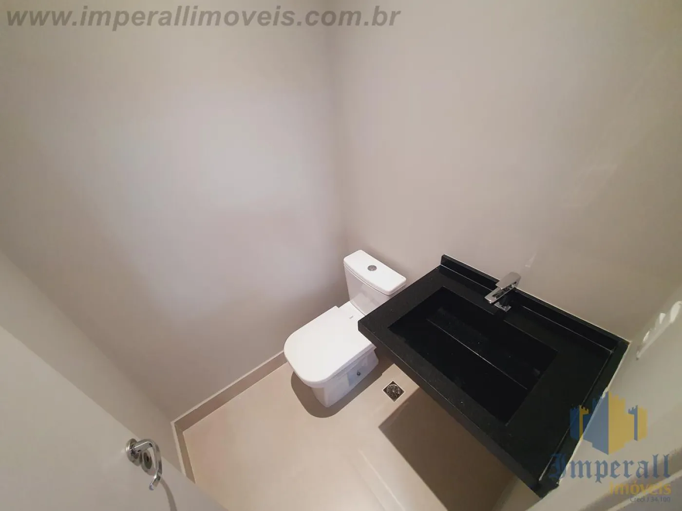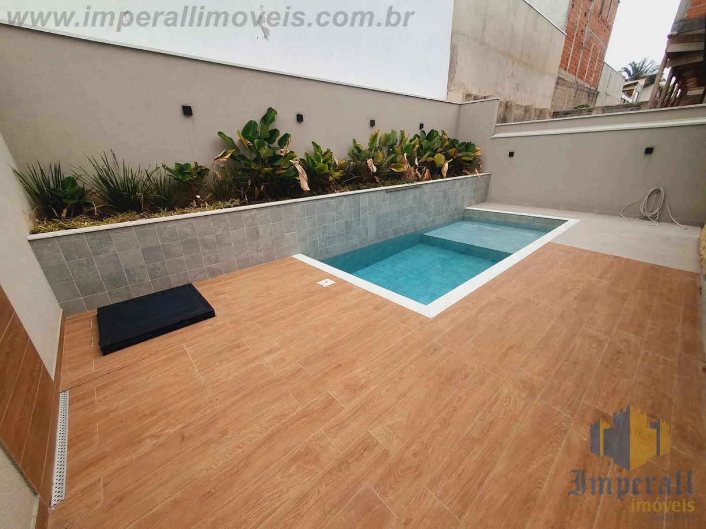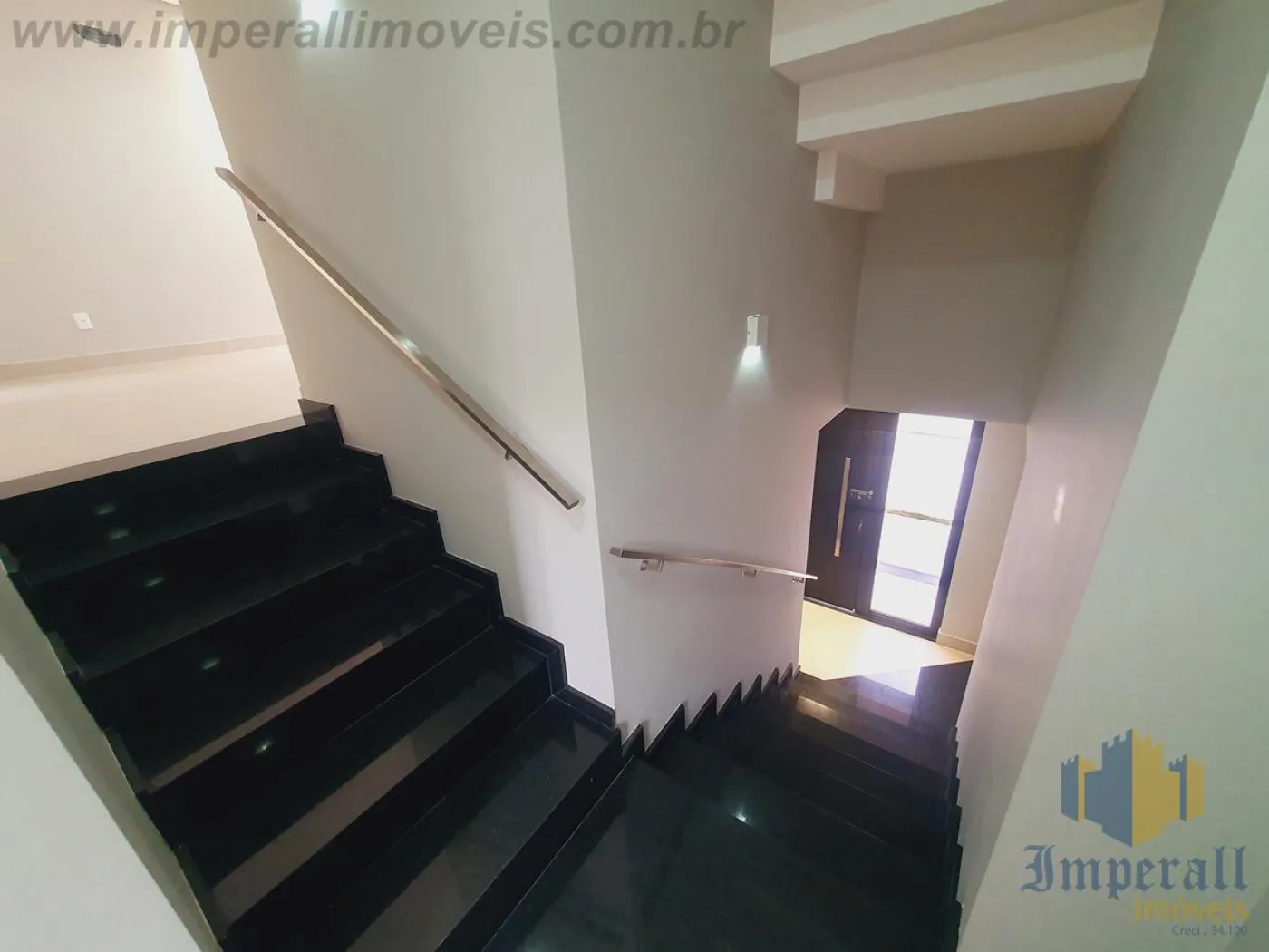 Sendo 4 dormitórios 4 suítes, (1 suíte piso inferior podendo ser convertida em escritório e 3 suítes piso superior), lavabo, 2 vagas de garagem cobertas, lavanderia, dois corredor lateral, sala de dois ambientes integrada a cozinha com ilha e cook top instalado, churrasqueira, quintal com piscina preparada aquecimento solar, energia solar instalada, energia fotovoltaica instalada e imóvel com preparação para elevador.
