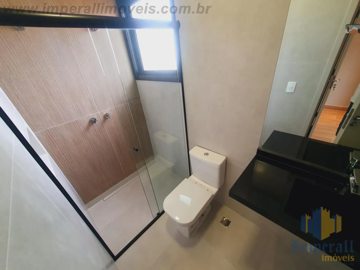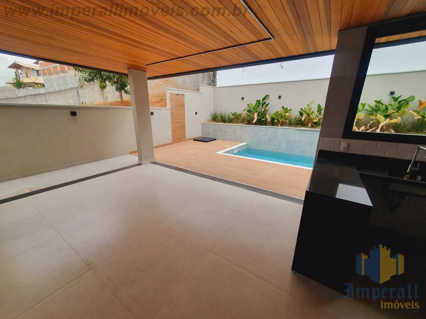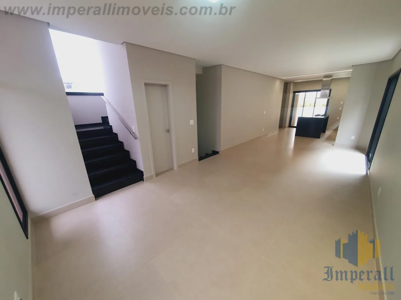 Sendo 4 dormitórios 4 suítes, (1 suíte piso inferior podendo ser convertida em escritório e 3 suítes piso superior), lavabo, 2 vagas de garagem cobertas, lavanderia, dois corredor lateral, sala de dois ambientes integrada a cozinha com ilha e cook top instalado, churrasqueira, quintal com piscina preparada aquecimento solar, energia solar instalada, energia fotovoltaica instalada e imóvel com preparação para elevador.