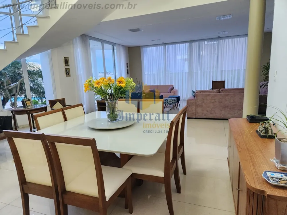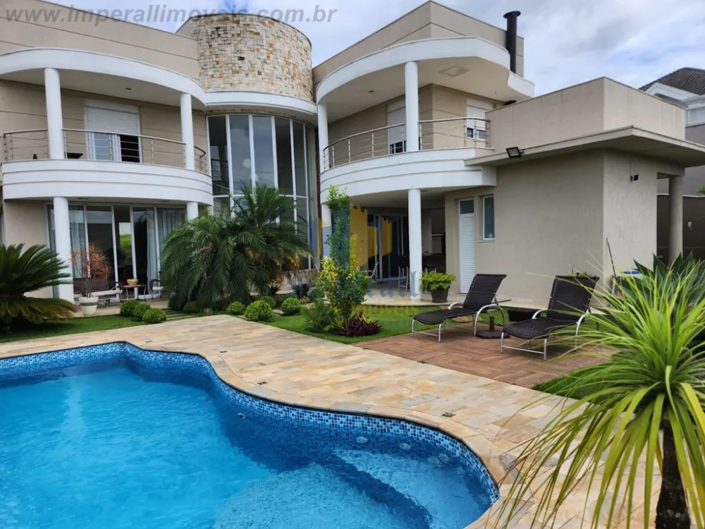 Lindo sobrado com acabamento de muito bom gosto, Casa com geração de Energia Fotovoltaica, possui 4 suítes, sendo uma master com sala de banho, armários planejados, 4 varandas, 3 salas sendo uma com pé direito duplo, 1 sala de home, sala de estar, sala de jantar, lavabo, escritório, copa, cozinha planejada, área de serviço com armários planejados, quartinho de serviço, área gourmet completa com piscina com hidro, churrasqueira, forno de pizza, wc de piscina, aquecimento solar em toda a casa e aquecimento solar na piscina, janelas dos quartos abertura com controle remoto, sistema de pressurização de água.