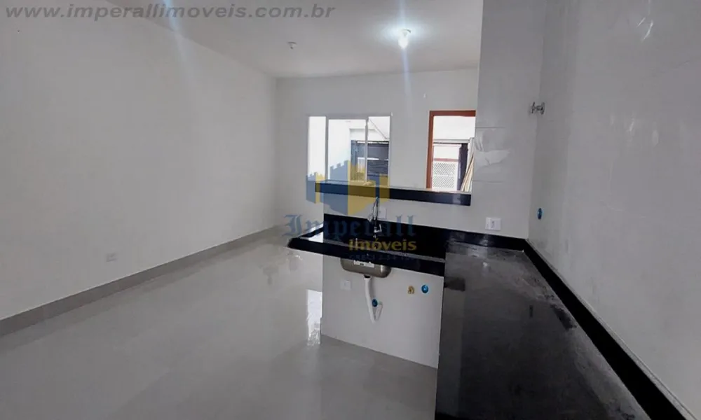 Linda casa térrea, geminada, nova, com designer moderno, em conceito aberto, integrando os espaços entre sala e cozinha.